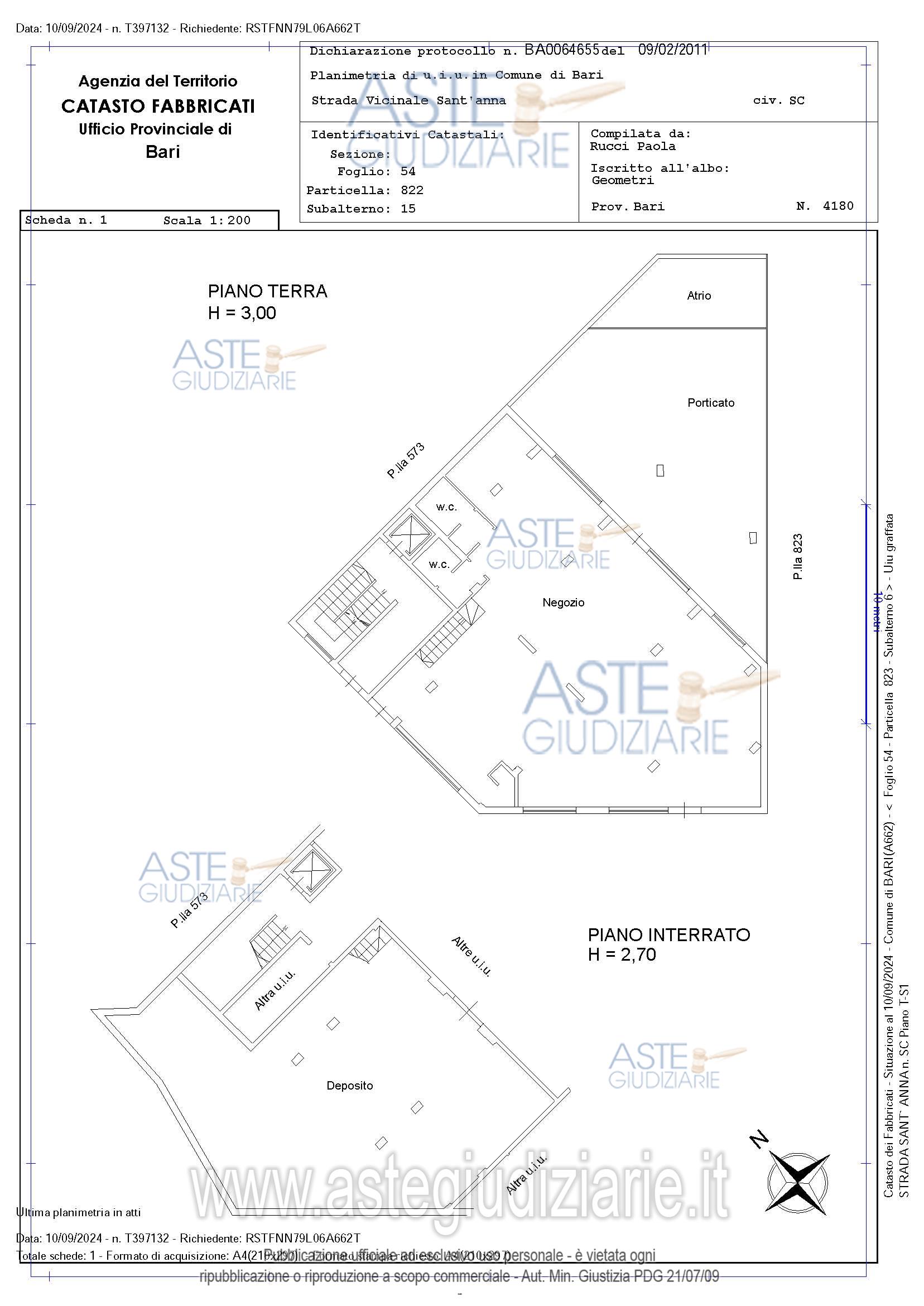 Vendita all'asta Senza incanto, con gara telematica asincrona - LOTTO 2: Unità immobiliare di circa 270 mq, costituita da un piano terra e da un piano interrato, collegati a mezzo di una scala interna. Il piano terra è costituito da un unico ambiente principale e da 2 servizi igienici dotati ciascuno di antibagno di cui uno accessibile anche da persone con ridotte capacità motorie. Il piano interrato è costituito da un unico ampio vano, con destinazione a deposito. A pertinenza dell’unità immobiliare vi è un’area scoperta con accesso dal locale a piano terra. Prezzo base € 345.000,00 (offerta minima € 258.750,00). Data inizio operazioni di vendita: 19/06/2026 ore 11:30. Giudice Dott. Antonio Ruffino. Professionista delegato alla vendita Avv. Francesco Converti - Email "francescoconverti@libero.it". Custode Giudiziario Avv. Francesco Converti - Email "francescoconverti@libero.it". Rif. Tribunale di Bari - Espropriazione immobiliare (cartabia) n. 83/2024