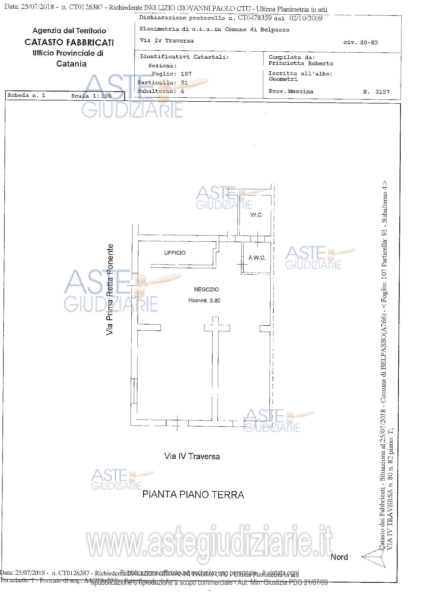 Vendita all'asta Senza incanto, con gara telematica sincrona mista - LOTTO 1: Negozio sito in Belpasso (CT), via IV Traversa n. 96-98, censito al Catasto Fabbricati al foglio 107, part. 91 sub 4.L’immobile si trova a piano terra della via IV Traversa all'angolo con la via Prima Retta Ponente, ed è composto da un unico grande vano “open space”, un piccolo disimpegno di ingresso che mette in comunicazione il negozio con la scala condominiale, da un anti bagno e un bagno. Prezzo base € 36.071,00 (offerta minima € 27.054,00). Data vendita 26/06/2026 ore 15:30. Giudice Maria Angela Chisari. Professionista delegato alla vendita Avv. Mariano Leonora - Email "avvmarianoleonora@libero.it". Custode Giudiziario Avv. Mariano Leonora - Email "avvmarianoleonora@libero.it". Rif. Tribunale di Catania - Esecuzione immobiliare post legge 80 n. 245/2017