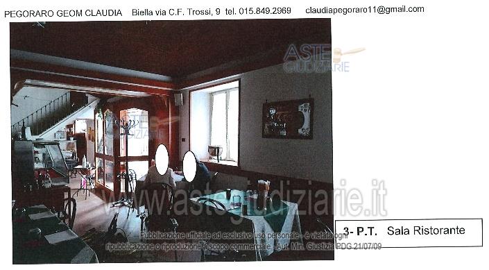 Vendita all'asta Senza incanto, con gara telematica asincrona - LOTTO UNICO:  Ristorante/pizzeria, con soprastante sala, dehor interno e adiacente fabbricato a uso tettoia, facenti parte di antica cortina edilizia. Trattasi di ristorante, con forno per pizza, al piano terreno e collegato al piano primo da ampio salone e servizi igienici, facente parte di fabbricato che si sviluppa su quattro piani fuori terra più sottotetto. Prezzo base € 223.380,00 (offerta minima € 167.535,00). Data inizio operazioni di vendita: 04/11/2025 ore 15:30. Giudice Emanuele Migliore. Professionista delegato alla vendita Avv. Carla Montarolo - Email "avvocatomontarolo@gmail.com". Custode Giudiziario Avv. Carla Montarolo - Email "avvocatomontarolo@gmail.com".  Rif. Tribunale di Biella - Espropriazione immobiliare (cartabia) n. 55/2024