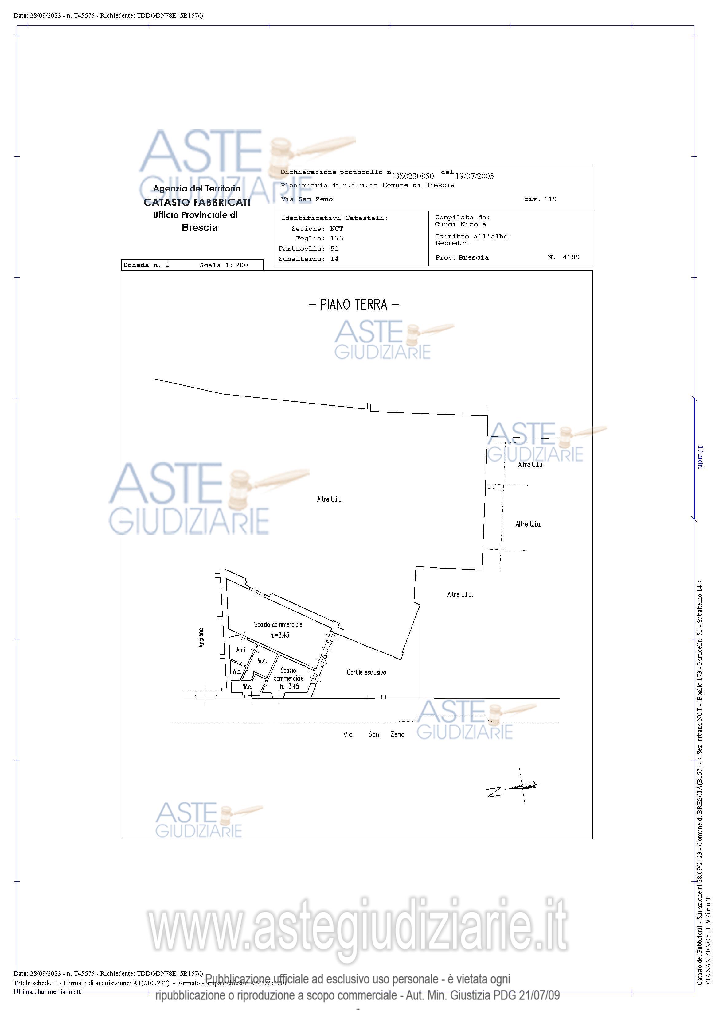 Vendita all'asta Senza incanto, con gara telematica asincrona - LOTTO 1: Spazio commerciale utilizzato attualmente come enoteca e disposto su tre piani (interrato/terra/primo): con a piano interrato cantinato e tre posti auto, a piano terreno posti auto scoperti, cortile e corti esclusivi, ingresso e locali esposizione ed a piano primo uffici, terrazza oltre a servizi igienici e ripostigli. Competono le proporzionali quote delle parti comuni ai sensi di legge. Prezzo base € 650.475,00 (offerta minima € 487.856,25). Data inizio operazioni di vendita: 07/05/2026 ore 11:30. Professionista delegato alla vendita Dott. Samuele Bracchi. Custode Giudiziario Dott. Samuele Bracchi - Email "visiteimmobili@anpebrescia.it". Rif. Tribunale di Brescia - Espropriazione immobiliare (cartabia) n. 276/2023