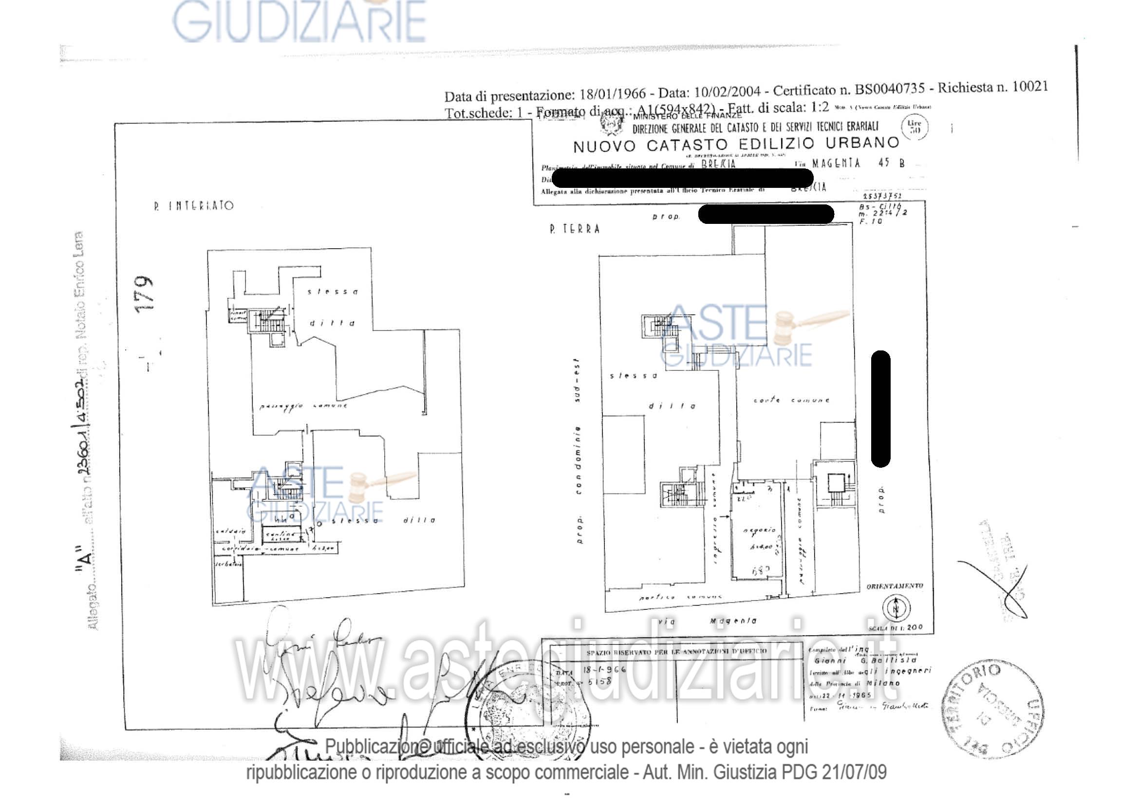 Vendita all'asta Senza incanto, con gara telematica asincrona - LOTTO 1: Negozio al piano terra con cantina al piano interrato + quota di comproprietà indivisa pari a 22/1000 della portineria costituita da ingresso, vano utile, cucina, bagno, disimpegno e e la quota proporzionale pari a 22/1000 della comproprietà delle parti condominiali dell'edificio. Prezzo base € 161.100,00 (offerta minima € 120.825,00). Data inizio operazioni di vendita: 02/12/2025 ore 12:00. Giudice Alessandro Pernigotto. Professionista delegato alla vendita Avv. Alessandra Redona. Custode Giudiziario Avv. Alessandra Redona - Email "avv.redona@gmail.com"; Tel. 0307704920. Rif. Tribunale di Brescia - Espropriazione immobiliare (cartabia) n. 247/2024