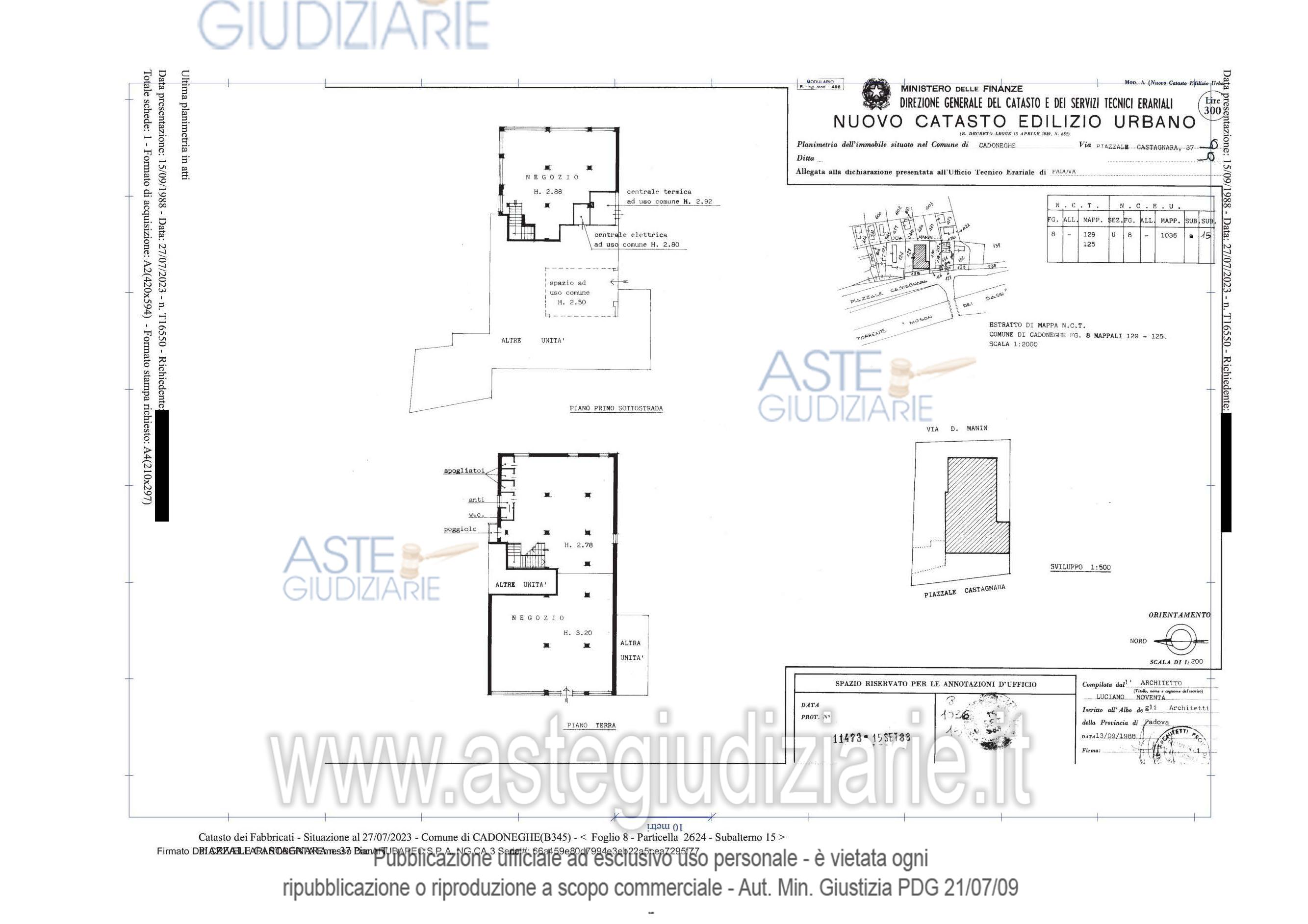 Vendita all'asta Senza incanto, con gara telematica sincrona - LOTTO 1: Lotto 1 - piena proprietà di unità immobiliare facente parte del fabbricato condominiale denominato "Condominio Brenta", sito in Comune di Cadoneghe (PD), Piazzale Castagnara n. 37 e precisamente negozio al piano terra e piano primo sottostrada (rispetto al piano strada di P.le Castagnara) collegati da scala interna, della superficie commerciale complessiva di mq. 422. Libero. Prezzo base € 253.000,00 (offerta minima € 189.750,00). Data vendita 03/03/2026 ore 10:00. Giudice Alessandra Pasqualetto. Professionista delegato alla vendita Not. Amelia Cuomo - Email "aste@apepnotai.it"; Tel. 049651228. Custode Giudiziario Apep - Email "visita@apepnotai.it"; Tel. 049651228. Rif. Tribunale di Padova - Espropriazione immobiliare (cartabia) n. 137/2023
