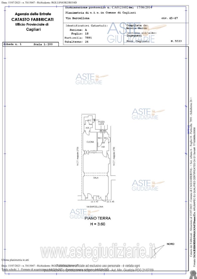 Vendita all'asta Senza incanto, con gara telematica asincrona - LOTTO UNICO: L’immobile è ubicato nel Comune di Cagliari ed ha un doppio accesso dalla via Barcellona ai civici 45 e 47 su fronte strada all’interno del centro storico. Trattasi di unità immobiliare con accesso indipendente che si sviluppa unicamente al piano terra su fabbricato di maggiori dimensioni; l’attuale destinazione d’uso è di tipologia commerciale e nello specifico dedita ad attività di somministrazione (ristorazione). Prezzo base € 180.800,00 (offerta minima € 135.600,00). Data inizio operazioni di vendita: 08/01/2026 ore 15:00. Giudice Valentina Frongia. Professionista delegato alla vendita Dott. Veronica Balletto - Email "veronicaballetto@hotmail.com"; Tel. 0706499249. Custode Giudiziario Ivg Cagliari - Email "IVG.VISITEIMMOBILI@TISCALI.IT"; Tel. 0702299036. Rif. Tribunale di Cagliari - Esecuzione immobiliare post legge 80 n. 103/2022