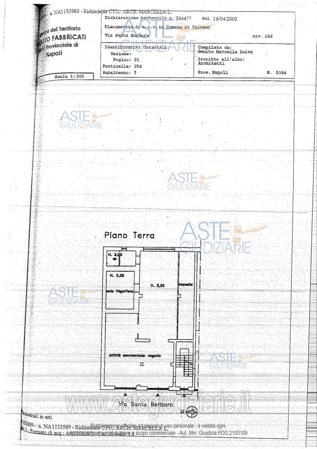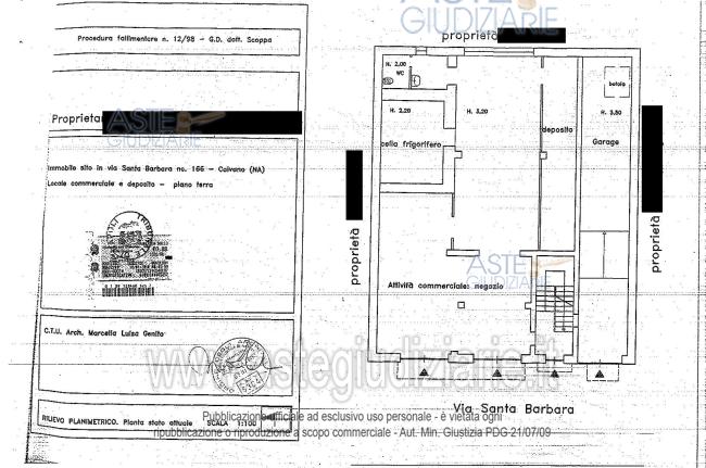 Vendita all'asta Senza incanto - LOTTO 1: diritti di comproprietà pari a 66,66% lotto 1, immobile in Caivano via Santa Barbara 166: locale commerciale al piano terra con ingresso a sinistra dell'accesso al vano scala ( in perizia mq 186,64) composto da un locale adibito a vendita con annesso deposito, locale cella frigorifera e wc, confinante con via Santa Barbara, vano scala, garage e proprietà aliena. Prezzo base € 28.700,58 (offerta minima € 21.525,44). Data vendita 09/06/2026 ore 16:00. Professionista delegato alla vendita Not. Michele Nastri - Email "studio.mnastri.1@notariato.it"; Tel. 0815586421. Curatore Dott. Spaccaforno Rosaria - Email "rosaria.spaccaforno@odcecnapoli.it"; Cell. 3490858825. Rif. Tribunale di Napoli - Fallimentare n. 12/1998