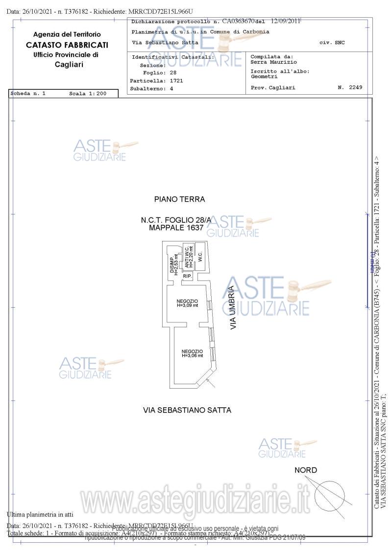 Vendita all'asta Senza incanto, con gara telematica asincrona - LOTTO UNICO: Quota pari all’intero del diritto di proprietà sul negozio al piano terradel maggior fabbricato alla Via Satta angolo Via Umbria composto da due vani, disimpegno, antibagno, bagno,piccolo ripostiglio. Prezzo base € 47.100,00 (offerta minima € 35.325,00). Data inizio operazioni di vendita: 25/11/2025 ore 11:00. Giudice Silvia Cocco. Professionista delegato alla vendita Not. Stefano Casti - Email "ufficiouniconotai@pec.it"; Tel. 07060222574. Custode Giudiziario Ivg Cagliari - Email "ivg.visiteimmobili@tiscali.it"; Tel. 0702299036. Rif. Tribunale di Cagliari - Esecuzione immobiliare post legge 80 n. 36/2018