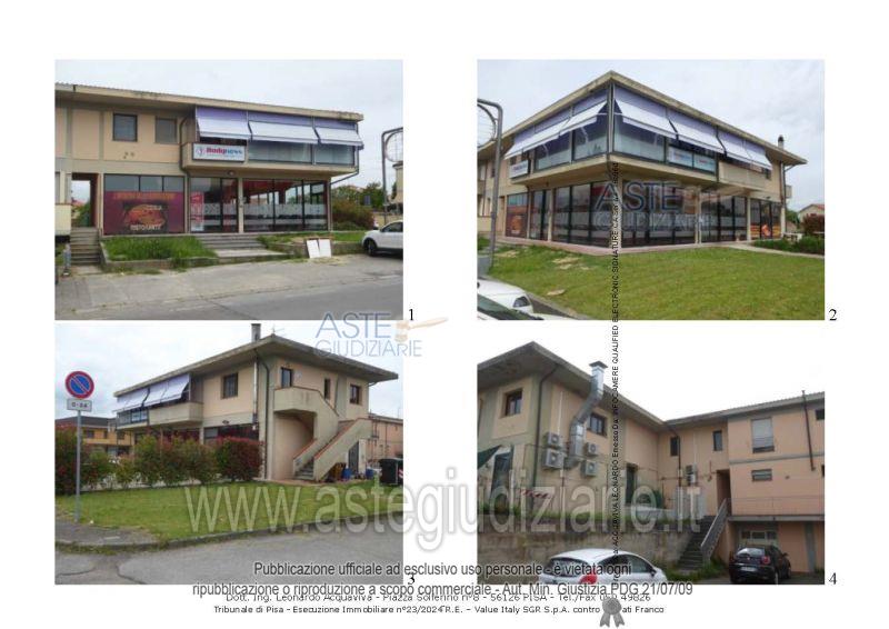 Vendita all'asta Senza incanto, con gara telematica asincrona - LOTTO 1: Unità immobiliare ad uso negozio, posta al piano terreno, primo fuori terra, di maggior fabbricato condominiale edificato in aderenza ad altro fabbricato condominiale. Prezzo base € 123.750,00 (offerta minima € 92.850,00). Data inizio operazioni di vendita: 28/05/2026 ore 16:00. Giudice Marco Zinna. Professionista delegato alla vendita Avv. Elena Turchi - Email "elena.tirchi@studiotft.it"; Tel. 058757398. Custode Giudiziario Cosimo Erriquez - Email "prenotazionipisa@asteiudiziarie.it"; Tel. 0587554790. Rif. Tribunale di Pisa - Espropriazione immobiliare (cartabia) n. 23/2024