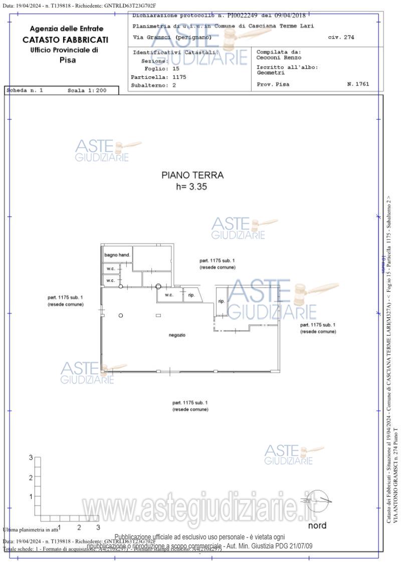 Vendita all'asta Senza incanto, con gara telematica asincrona - LOTTO 1: Unità immobiliare ad uso negozio posta al piano terreno primo fuori terra di maggior fabbricato condominiale. Prezzo base € 165.000,00 (offerta minima € 123.750,00). Data inizio operazioni di vendita: 22/01/2026 ore 16:00. Giudice Marco Zinna. Professionista delegato alla vendita Avv. Elena Turchi - Email "elena.turchi@studiotft.it"; Tel. 058757398. Custode Giudiziario Dott. Cosimo Erriquez - Email "prenotazionipisa@astagiudiziaria.com"; Tel. 050554790. Rif. Tribunale di Pisa - Espropriazione immobiliare (cartabia) n. 23/2024