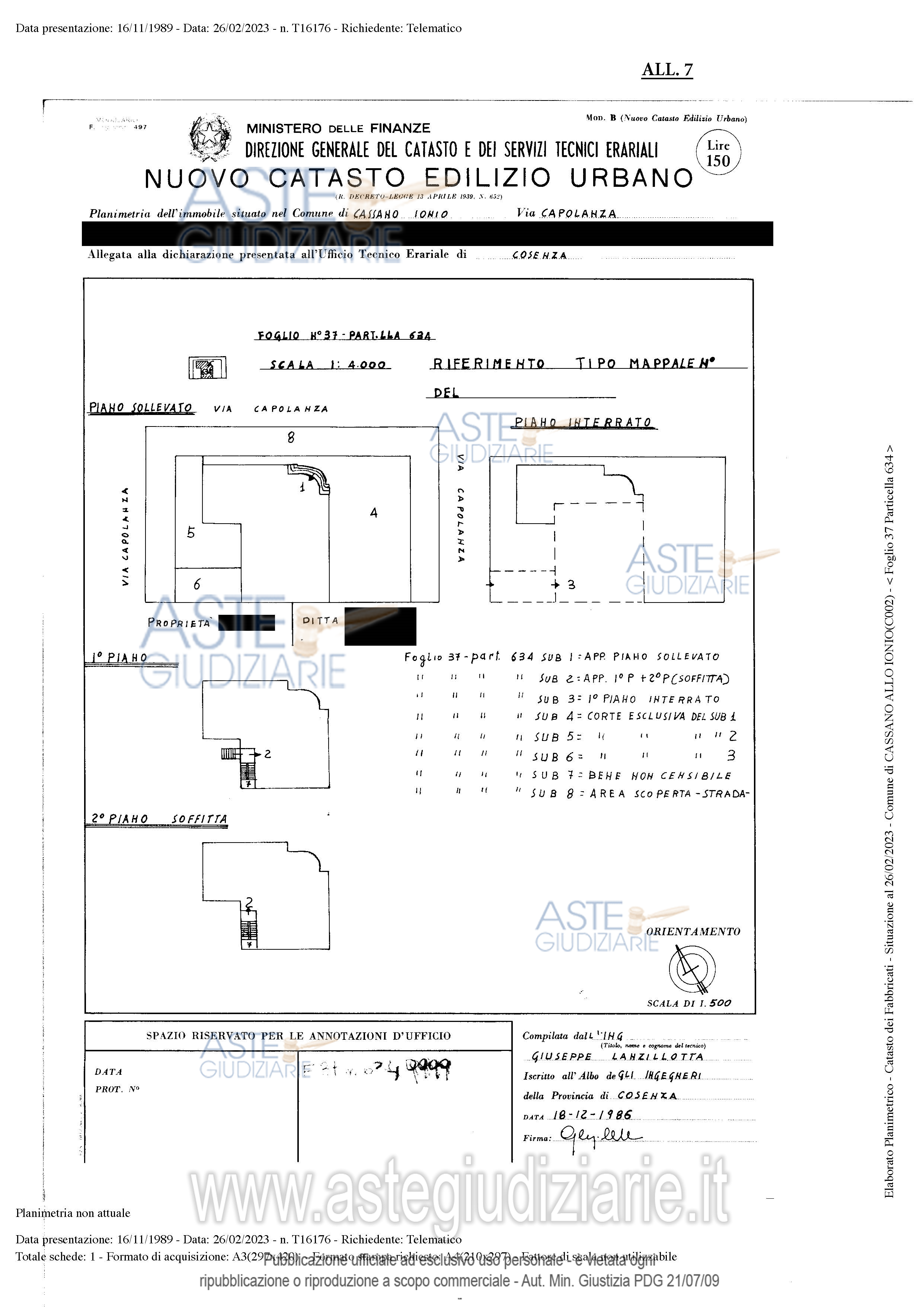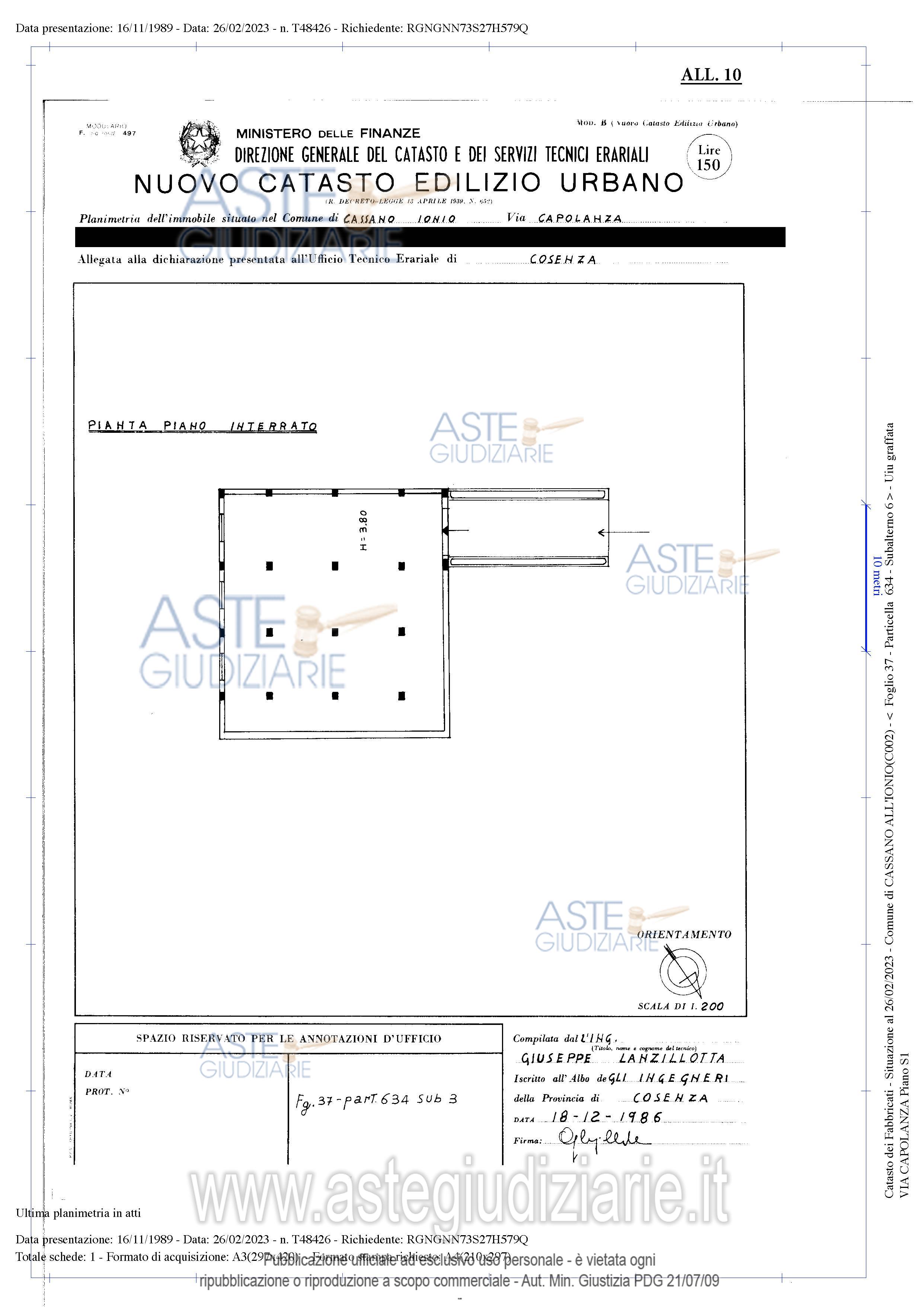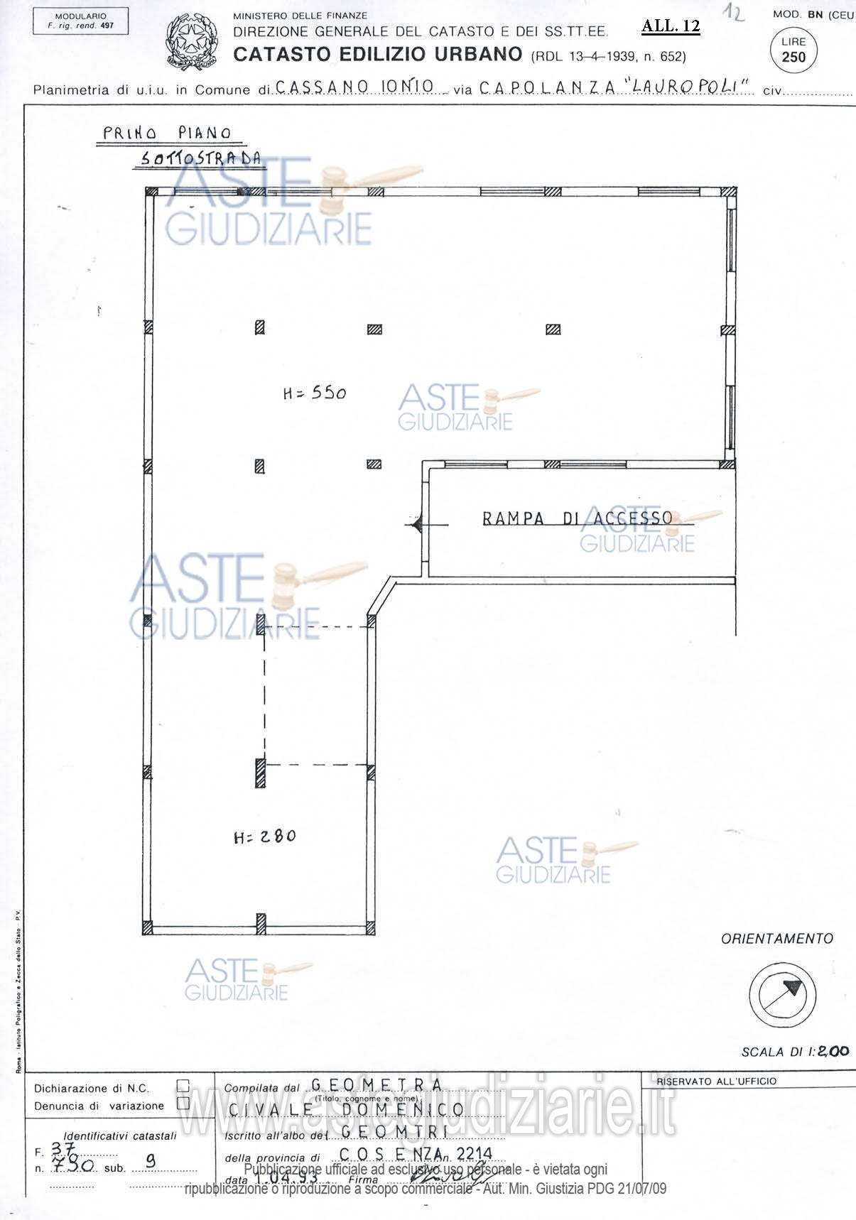 Vendita all'asta Senza incanto, con gara telematica sincrona - LOTTO 2: Unità immobiliare sita in Cassano allo Ionio (CS) alla via F. Scaglia, distinta al Catasto Fabbricati C.E.U. Fg. 37, p.lla 790 Sub 20 (ex sub 9), cat. D/6. Prezzo base € 60.218,44 (offerta minima € 45.163,83). Data vendita 20/04/2026 ore 16:00. Giudice Giuliana Gaudiano. Professionista delegato alla vendita Avv. Luca Dalba - Email "lucadalba@studiodalba.it". Custode Giudiziario Avv. Luca D Alba - Email "lucadalba@studiodalba.it". Rif. Tribunale di Castrovillari - Esecuzione immobiliare post legge 80 n. 136/2022