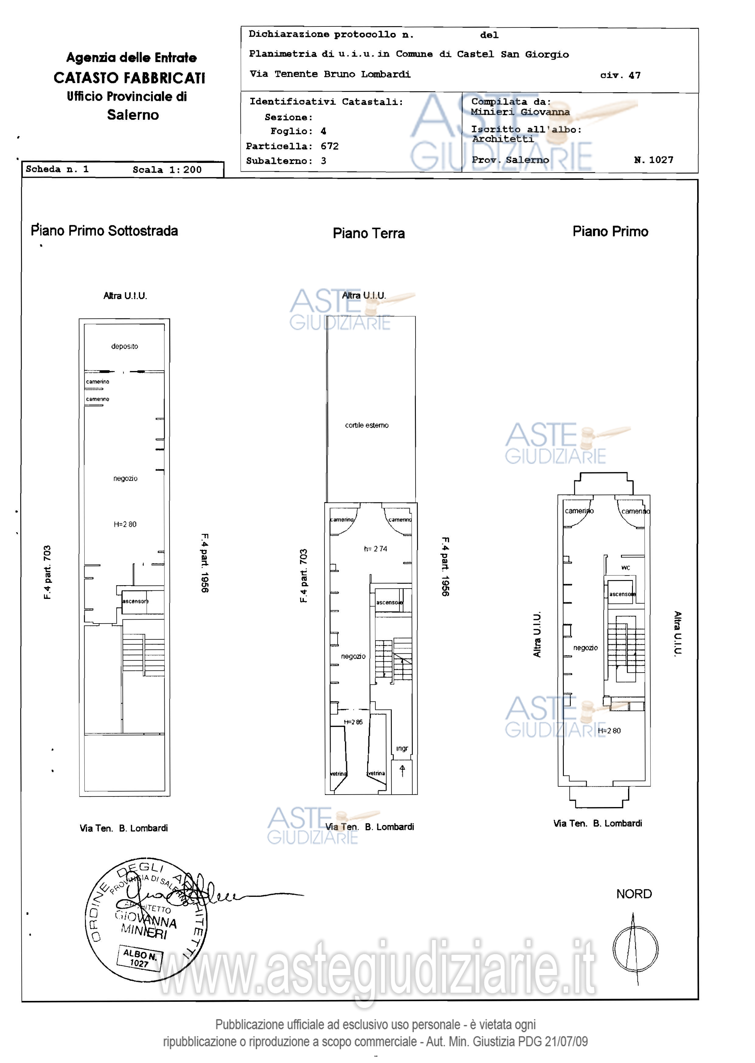 Vendita all'asta Senza incanto - LOTTO 1: Unità immobiliare adibita ad attività commerciale, composta da: due locali e un cortile al piano terra; unico locale, servizio igienico e due balconi al piano primo; tre locali al piano interrato. Prezzo base € 122.108,00 (offerta minima € 91.581,00). Data vendita 30/04/2026 ore 15:30. Giudice Dott. Luigi Bobbio. Professionista delegato alla vendita Avv. Matteo Baselice. Custode Giudiziario Avv. Matteo Baselice - Email "basmat@libero.it"; Cell. 3338750202. Rif. Tribunale di Nocera Inferiore - Esecuzione immobiliare post legge 80 n. 100/2008