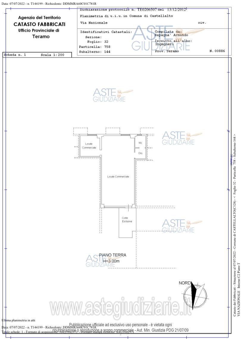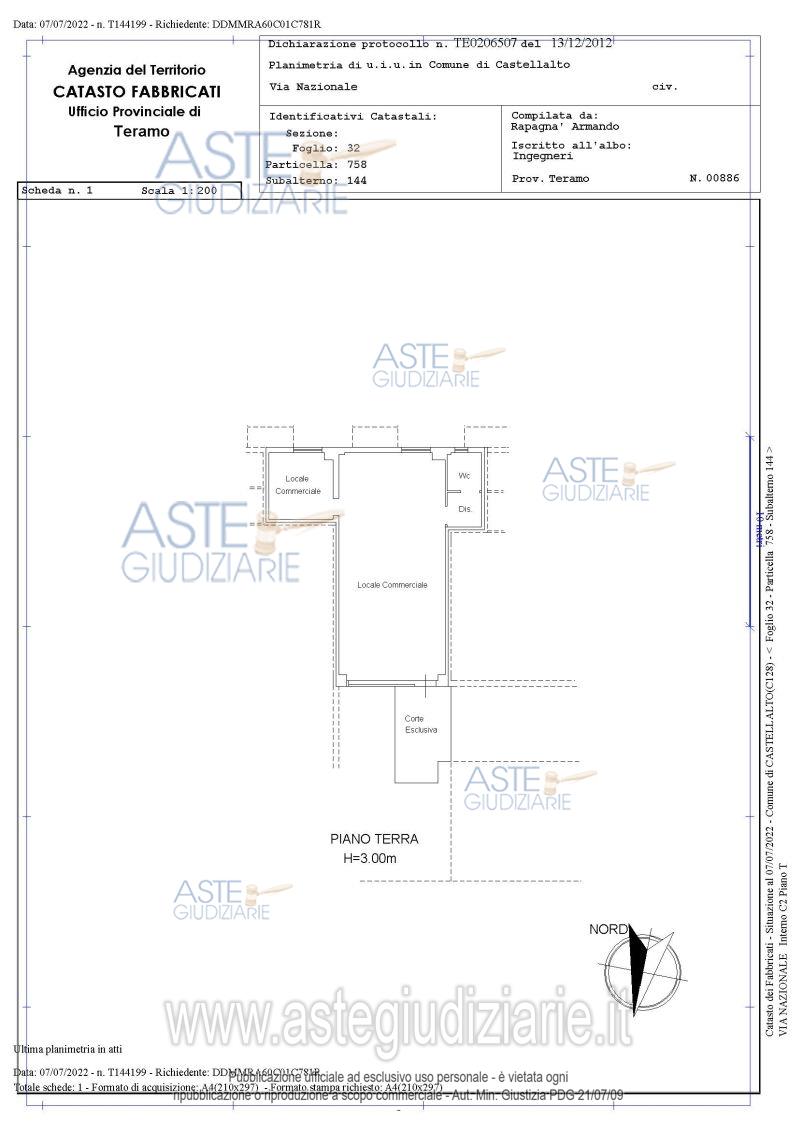 Vendita all'asta Senza incanto, con gara telematica asincrona - LOTTO 1:  Diritti pari ad  1/1 della piena proprietà su un locale commerciale (negozio) ubicato al piano terra, interno C/2,  di un edificio condominiale di maggiore consistenza. Il presente lotto risulta completato ed è presente la pavimentazione in monocottura. Le pareti risultano intonacate mentre sull’intradosso del solaio, l’intonaco non risulta realizzato.  Le vetrine sono in alluminio con vetri doppi, la corte esclusiva risulta pavimentata. Prezzo base € 55.632,00 (offerta minima € 41.724,00). Data inizio operazioni di vendita: 05/11/2025 ore 15:30. Professionista delegato alla vendita Dott. Cinzia Cianchini - Email "cinzia.cianchini@virgilio.it"; Cell. 3313598609. Custode Giudiziario  Avv. Divinangelo D'alesio - Email "dalesio@dalesio-lupi.it"; Tel. 0861241516.  Rif. Tribunale di Teramo - Esecuzione immobiliare post legge 80 n. 37/2022