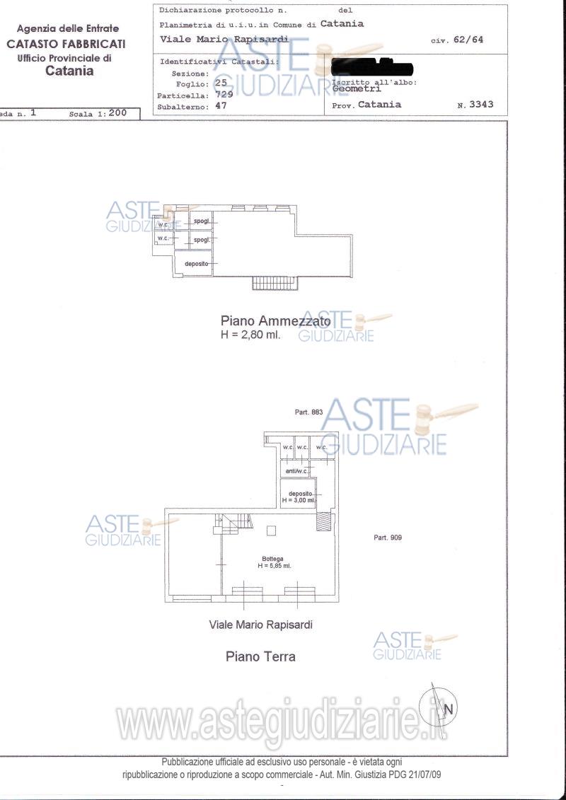 Vendita all'asta Senza incanto, con gara telematica sincrona mista - LOTTO 3: Locale commerciale sito nel comune di Catania, Viale Mario Rapisardi nn. 60, 62 e 64. Prezzo base € 309.000,00 (offerta minima € 231.750,00). Data vendita 10/07/2026 ore 15:30. Professionista delegato alla vendita: Avv. Mariano Leonora - Email "avvmarianoleonora@libero.it"; Tel. 095/2162829.