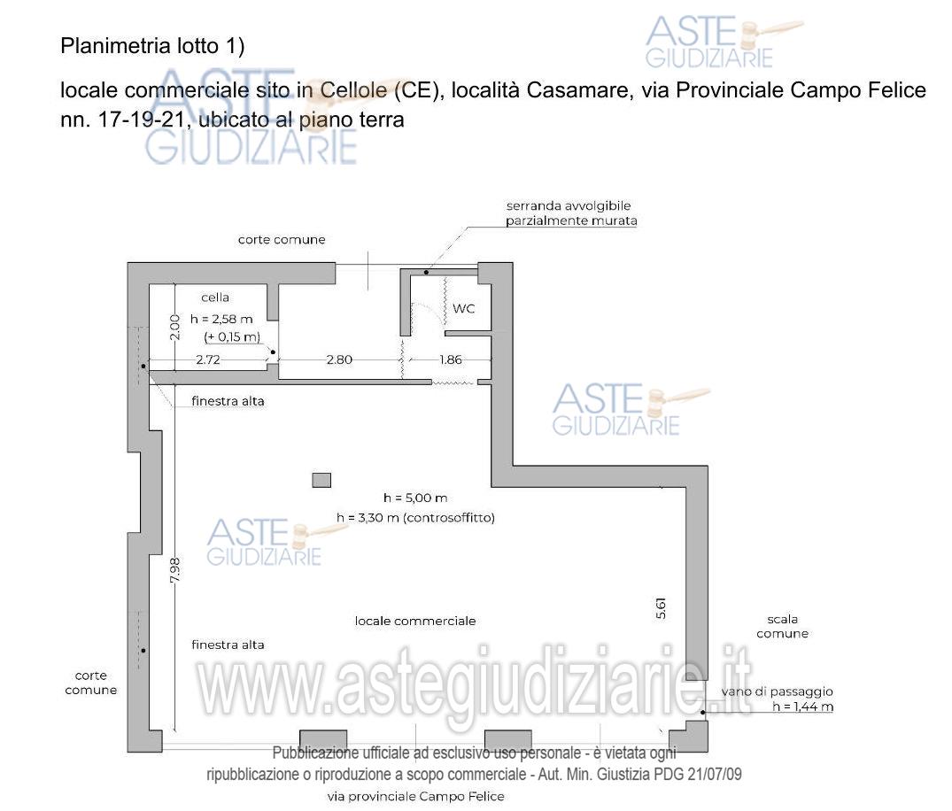 Vendita all'asta Senza incanto, con gara telematica asincrona - LOTTO 1: Piena Proprietà locale commerciale sito in Cellole (CE) località Casamare. Prezzo base € 50.000,00 (offerta minima € 37.500,00). Data inizio operazioni di vendita: 19/05/2026 ore 10:30. Giudice Linda Catagna. Professionista delegato alla vendita Avv. Maurizio Spirito - Email "avvspiritomaurizio@virgilio.it"; Cell. 3479073526. Custode Giudiziario Avv. Maurizio Spirito - Email "avvspiritomaurizio@virgilio.it"; Cell. 3479073526. Rif. Tribunale di Santa Maria Capua Vetere - Esecuzione immobiliare post legge 80 n. 110/2024