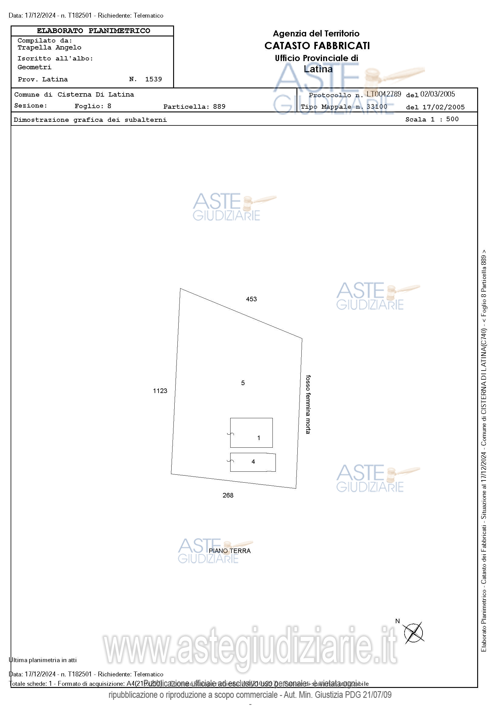 Vendita all'asta Senza incanto, con gara telematica asincrona - LOTTO 3: Право полной собственности на торговое помещение на первом этаже. Prezzo base € 25.380,00 (offerta minima € 19.035,00). Data inizio operazioni di vendita: 14/05/2026 ore 10:00. Giudice Dott. Tiziana Tinessa. Custode Giudiziario Aste Giudiziarie Inlinea S.P.A. - Email "vendite@astegiudiziarie.it"; Tel. 0586 201480. Curatore Avv. Giuseppe Accapezzato. Rif. Tribunale di Latina - Fallimentare (nuovo rito) n. 56/2022