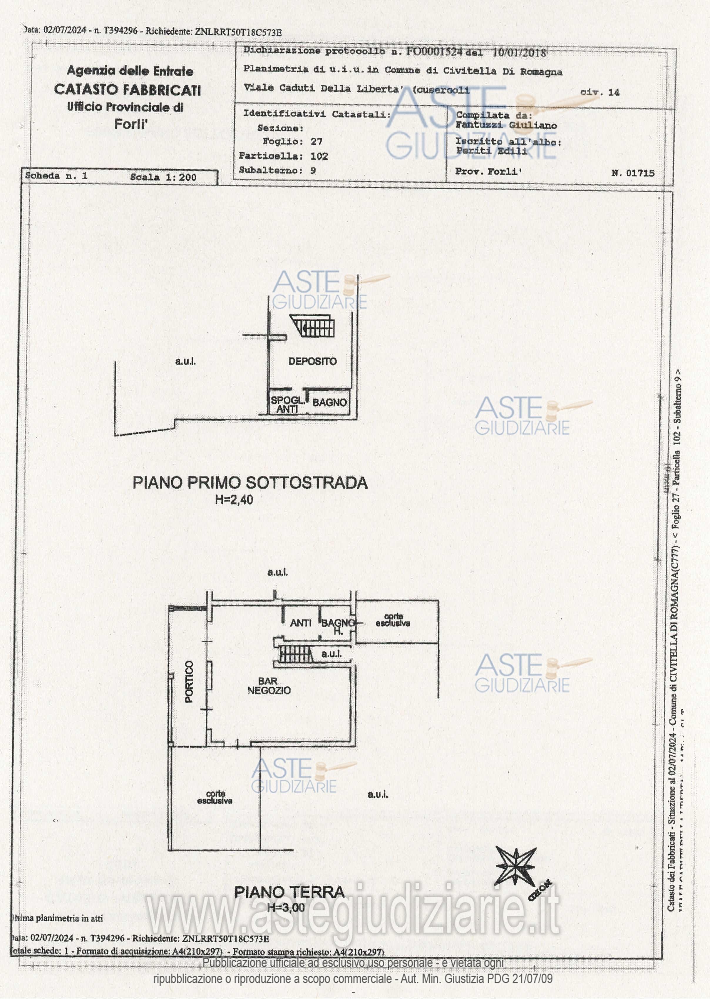 Vendita all'asta Senza incanto, con gara telematica asincrona - LOTTO 1: Trattasi unità immobiliare ad uso negozio/bar posto al piano terra con ingresso indipendente da via Caduti per la Libertà n. 14 e una ad uso deposito posto al piano sotto strada con corti esclusive, facenti parte del fabbricato condominiale edificato in angolo tra via Antonio Carini e via Caduti per la Libertà - classe energetica D; occupato con contratto non opponibile alla procedura. Prezzo base € 90.000,00 (offerta minima € 67.500,00). Data inizio operazioni di vendita: 26/11/2025 ore 10:00. Giudice Dott. Fabio Santoro. Professionista delegato alla vendita Avv. Alessandra Bucchi - Email "avv.alebucchi@gmail.com"; Tel. 0543562711. Custode Giudiziario Avv. Alessandra Bucchi - Email "avv.alebucchi@gmail.com"; Tel. 0543562711. Rif. Tribunale di Forlì - Espropriazione immobiliare (cartabia) n. 120/2023