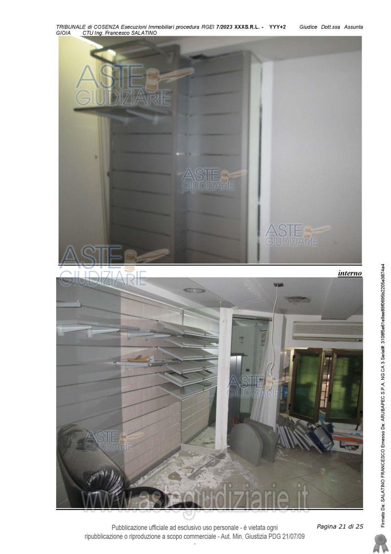 Vendita all'asta Senza incanto, con gara telematica sincrona - LOTTO UNICO: Immobile al piano terra ubicato in Cosenza, in pieno centro, accatastato come fg 17, piano T, cat C1, cl 10, mq 91, rendita € 3.510,72. Già adibito a negozio con 2 ampie vetrine sul corso. Il tutto come meglio descritto nella Relazione di Consulenza tecnica d’ufficio redatta dal C.T.U., alla quale si fa espresso rinvio. L’immobile è attualmente libero ed in buono stato seppur necessita di piccole sanatorie edilizie e catastali. Prezzo base € 144.415,00 (offerta minima € 108.311,25). Data vendita 30/10/2025 ore 18:00. Giudice Dott. Mariarosaria Savaglio. Professionista delegato alla vendita Dott. Ettore Filice - Email "ettore.filice@hotmail.it"; Tel. 0984403697. Custode Giudiziario Dott. Ettore Filice - Email "ettore.filice@hotmail.it"; Tel. 0984403697. Rif. Tribunale di Cosenza - Esecuzione immobiliare post legge 80 n. 7/2023