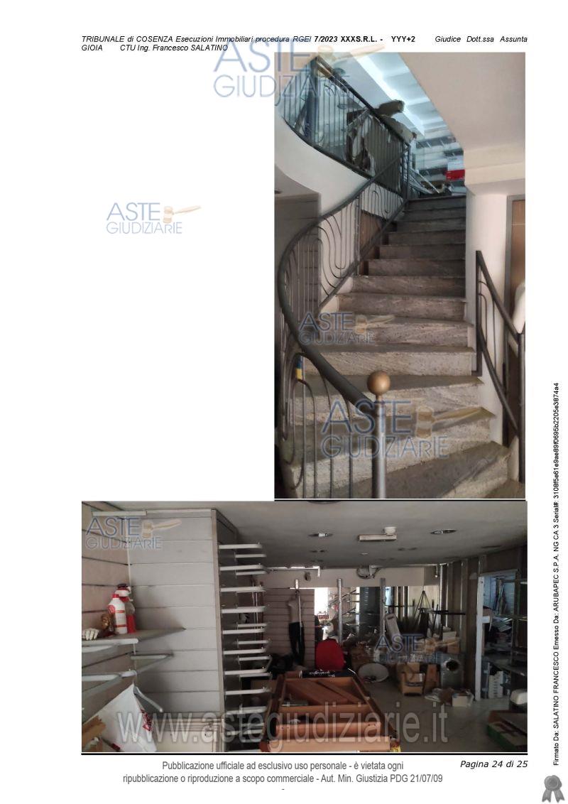 Vendita all'asta Senza incanto, con gara telematica sincrona - LOTTO UNICO: Immobile al piano terra ubicato in Cosenza, in pieno centro, accatastato come fg 17, piano T, cat C1, cl 10, mq 91, rendita € 3.510,72. Già adibito a negozio con 2 ampie vetrine sul corso. Il tutto come meglio descritto nella Relazione di Consulenza tecnica d’ufficio redatta dal C.T.U., alla quale si fa espresso rinvio. L’immobile è attualmente libero ed in buono stato seppur necessita di piccole sanatorie edilizie e catastali. Prezzo base € 288.830,00 (offerta minima € 216.622,50). Data vendita 23/03/2026 ore 18:00. Giudice Dott. Assunta Gioia. Professionista delegato alla vendita Dott. Ettore Filice - Email "ettore.filice@hotmail.it"; Tel. 0984403697. Custode Giudiziario Dott. Ettore Filice - Email "ettore.filice@hotmail.it"; Tel. 0984403697. Rif. Tribunale di Cosenza - Esecuzione immobiliare post legge 80 n. 7/2023
