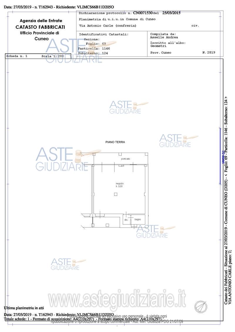 Vendita all'asta Senza incanto, con gara telematica asincrona - LOTTO 38: Piena proprietà di unità commerciali di 99,04 mq di superficie utile lorda, al piano terra, a pianta rettangolare. Al suo interno risulta così suddiviso: locale commerciale, un deposito, un bagno, un disimpegno, due vetrate, di fronte un’area porticata e nel retro un’area coperta. Prezzo base € 52.000,00 (offerta minima € 52.000,00). Data inizio operazioni di vendita: 14/04/2026 ore 09:30. Giudice Dott. Paola Elefante. Rif. Tribunale di Cuneo - Nuovo concordato preventivo n. 11/2018