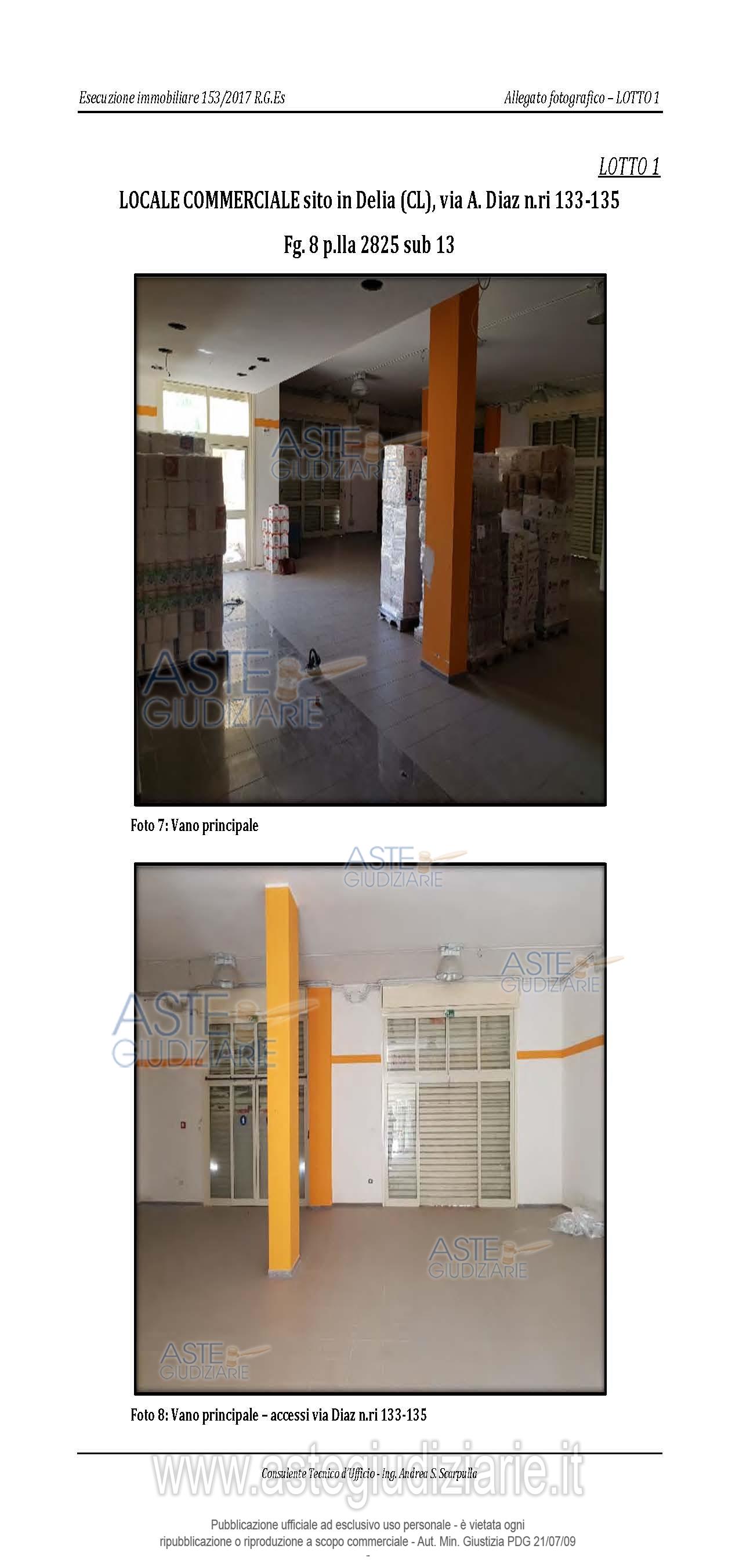 Vendita all'asta Senza incanto, con gara telematica sincrona mista - LOTTO 1: Piena proprietà di locale commerciale ubicato a Delia (CL) - via Armando Diaz n.ri 133-135, piano T LOCALE COMMERCIALE con superficie commerciale di mq 288 ca. sito in Delia (CL) nella via Armando Diaz n.ri 133-135. Identificato al NCEU del Comune di Delia al Fg. 8, p.lla 2825, sub 13, piano T, categ. C/1, cl. 2, mq 226. Prezzo base € 127.164,00 (offerta minima € 95.373,00). Data vendita 28/05/2026 ore 12:00. Giudice Dott. Francesco Lauricella. Professionista delegato alla vendita Avv. Pierluigi Zoda. Custode Giudiziario Avv. Pierluigi Zoda - Email "studiolegalezoda@tin.it". Rif. Tribunale di Caltanissetta - Esecuzione immobiliare post legge 80 n. 153/2017