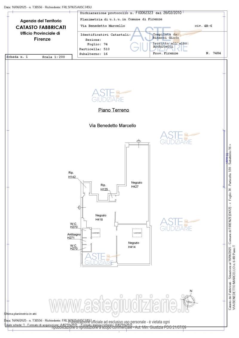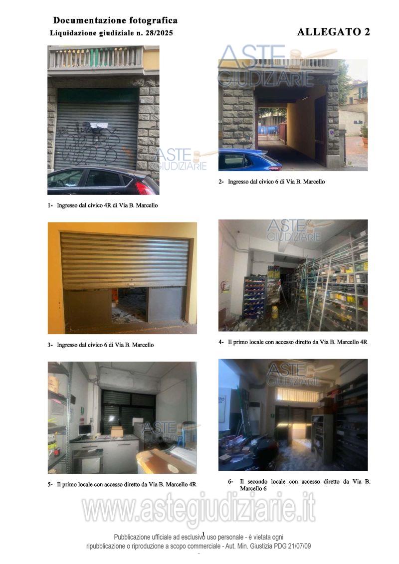 Vendita all'asta Senza incanto - LOTTO UNICO: Porzione del fabbricato condominiale posto in Comune di Firenze, Via Benedetto Marcello con accesso dal civico 4/r, e dal civico 6 attraverso il percorso comune coperto laterale all'edificio, e precisamente unità immobiliare ad uso negozio al piano terreno, composta da tre ampi locali, ripostigli, servizi igienici con antibagno. Oltre quota di comproprietà sulle parti comuni del fabbricato. Prezzo base € 214.200,00 (offerta minima € 182.070,00). Data vendita 26/05/2026 ore 10:30. Giudice Dott. Cristian Soscia. Custode Giudiziario Istituto Vendite Giudiziarie Di Firenze - Email "prenota.fi@isveg.it"; Tel. 0552340830. Curatore Dott. Castagnazzo Antonio. Rif. Tribunale di Firenze - Liquidazione giudiziale(cci) n. 28/2025