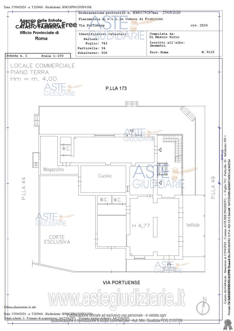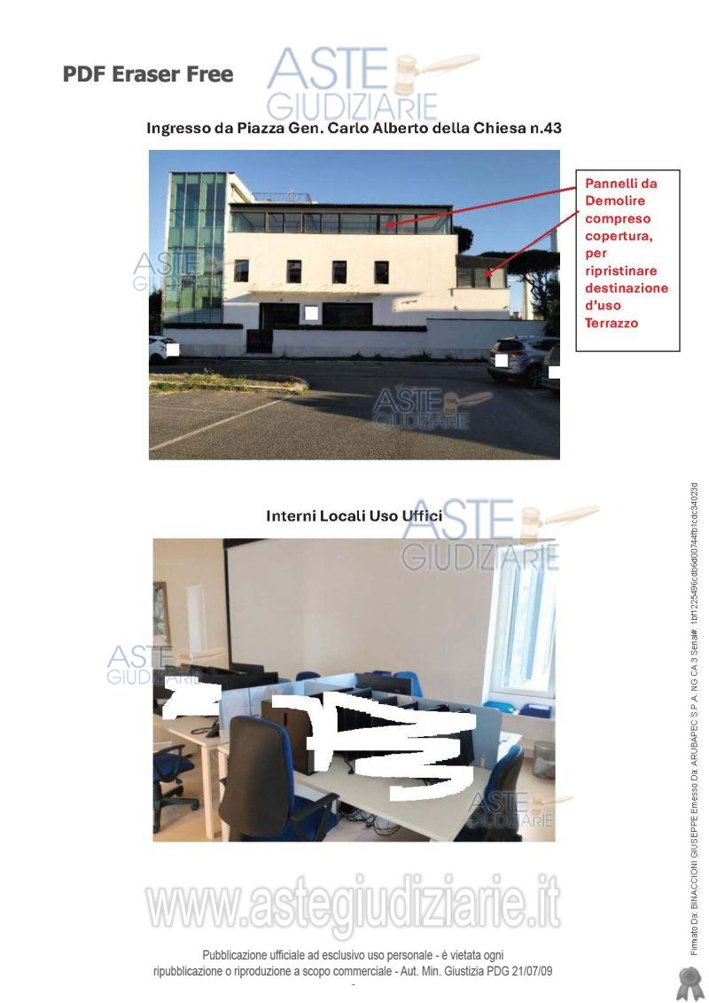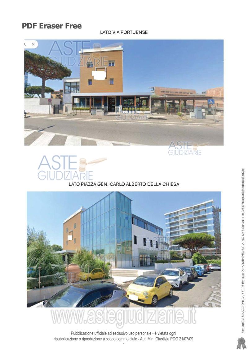 Vendita all'asta Senza incanto, con gara telematica asincrona - LOTTO UNICO: Edificio composto da tre piani fuori terra di cui: con destinazione uffici la porzione del piano terra, primo e secondo con ingresso da Piazza Gen. Carlo Alberto dalla Chiesa n.43; con destinazione ristorante la porzione al piano terra con ingresso da Via Portuense 2500. Occupato da terzi con contratto di locazione. Si rinvia per la completa descrizione dell'immobile alla relazione ed agli allegati del CTU. Prezzo base € 1.350.000,00 (offerta minima € 1.012.500,00). Data inizio operazioni di vendita: 26/11/2025 ore 10:30. Giudice Stefano Palmaccio. Professionista delegato alla vendita Avv. Isabella Calderai - Email "isabellacalderai@gmail.com"; Cell. 3208106971. Custode Giudiziario Avv. Isabella Calderai - Email "isabellacalderai@gmail.com"; Cell. 3208106971. Rif. Tribunale di Civitavecchia - Espropriazione immobiliare (cartabia) n. 42/2024