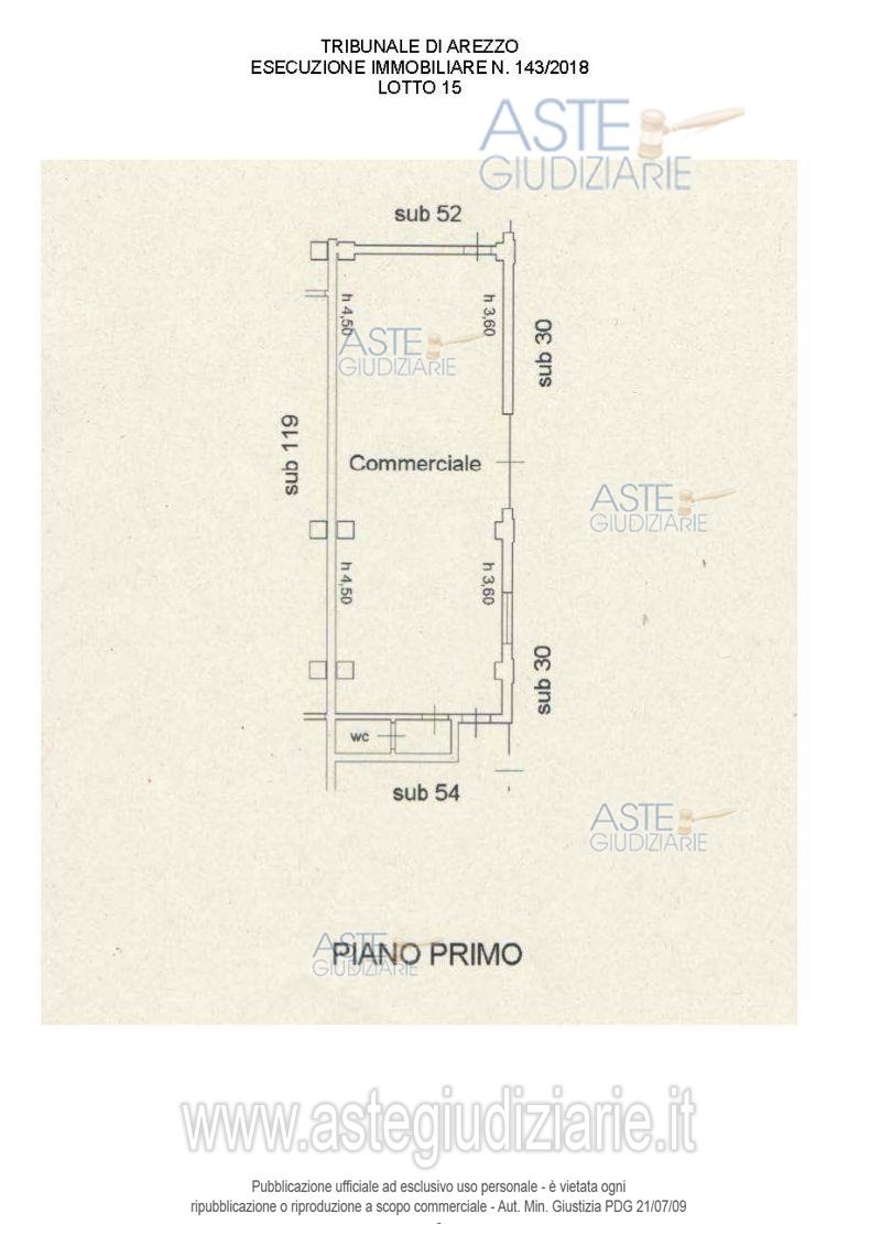 Vendita all'asta Senza incanto, con gara telematica sincrona mista - LOTTO 15: (ex Lotto 12) Piena proprietà di locale commerciale al piano primo, interno 44, facente parte di un immobile destinato ad attività commerciale/artigianale/servizi denominato 'Parco Valdichiana', composto da un vano destinato a negozio diviso con pareti attrezzate in attesa, spogliatoio, zona lavorazione, ripostiglio, magazzino e disimpegno, con antibagno e servizio igienico. Superficie commerciale: mq. 112,00 circa. Prezzo base € 64.226,00 (offerta minima € 48.169,50). Data vendita 29/01/2026 ore 14:40. Giudice Elisabetta Rodinò Di Miglione. Professionista delegato alla vendita Avv. Sauro Paoletti - Email "avvsauropaoletti@gmail.com"; Cell. 3474805079; Tel. 055984185. Custode Giudiziario Avv. Istituto Vendite Giudiziarie Arezzo – Siena - Email "visite.ivg@gmail.com"; Cell. 3397337017; Tel. 0577318111. Rif. Tribunale di Arezzo - Esecuzione immobiliare post legge 80 n. 143/2018
