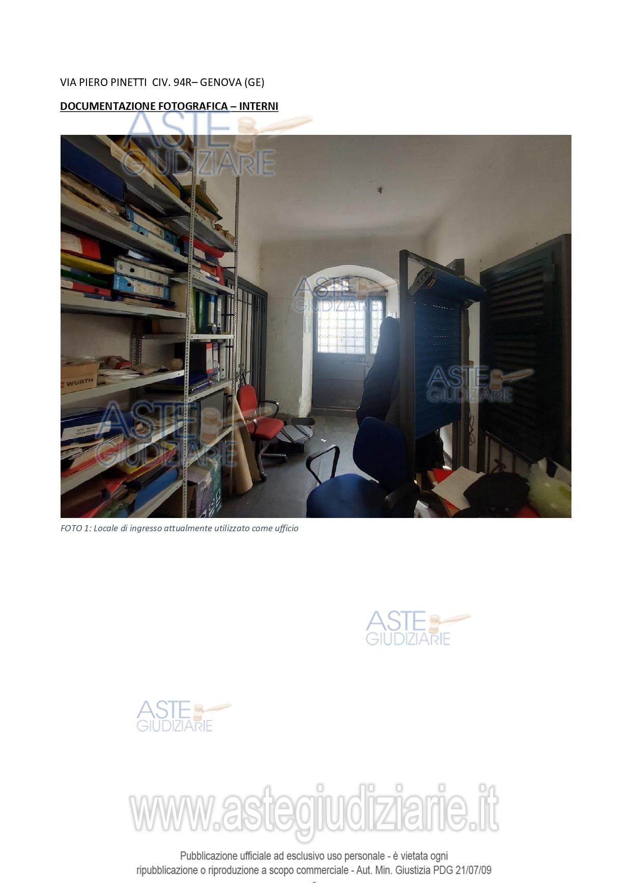 Vendita all'asta Senza incanto, con gara telematica sincrona mista - LOTTO 1: Tribunale di Genova, LOTTO I vendita locale commerciale sito in Genova, Via Piero Pinetti civ. 94 R. piano T. Per maggiori informazioni si rimanda alla perizia di stima allegata. Prezzo base € 13.500,00 (offerta minima € 10.125,00). Data vendita 25/11/2025 ore 12:00. Professionista delegato alla vendita Dott. Angela Alessio - Email "angelaalessio.ge@gmail.com"; Cell. 3488087521. Custode Giudiziario Dott. Sovemo Srl - Email "immobiliare@sovemo.com"; Tel. 0105299253. Rif. Tribunale di Genova - Espropriazione immobiliare (cartabia) n. 30/2024