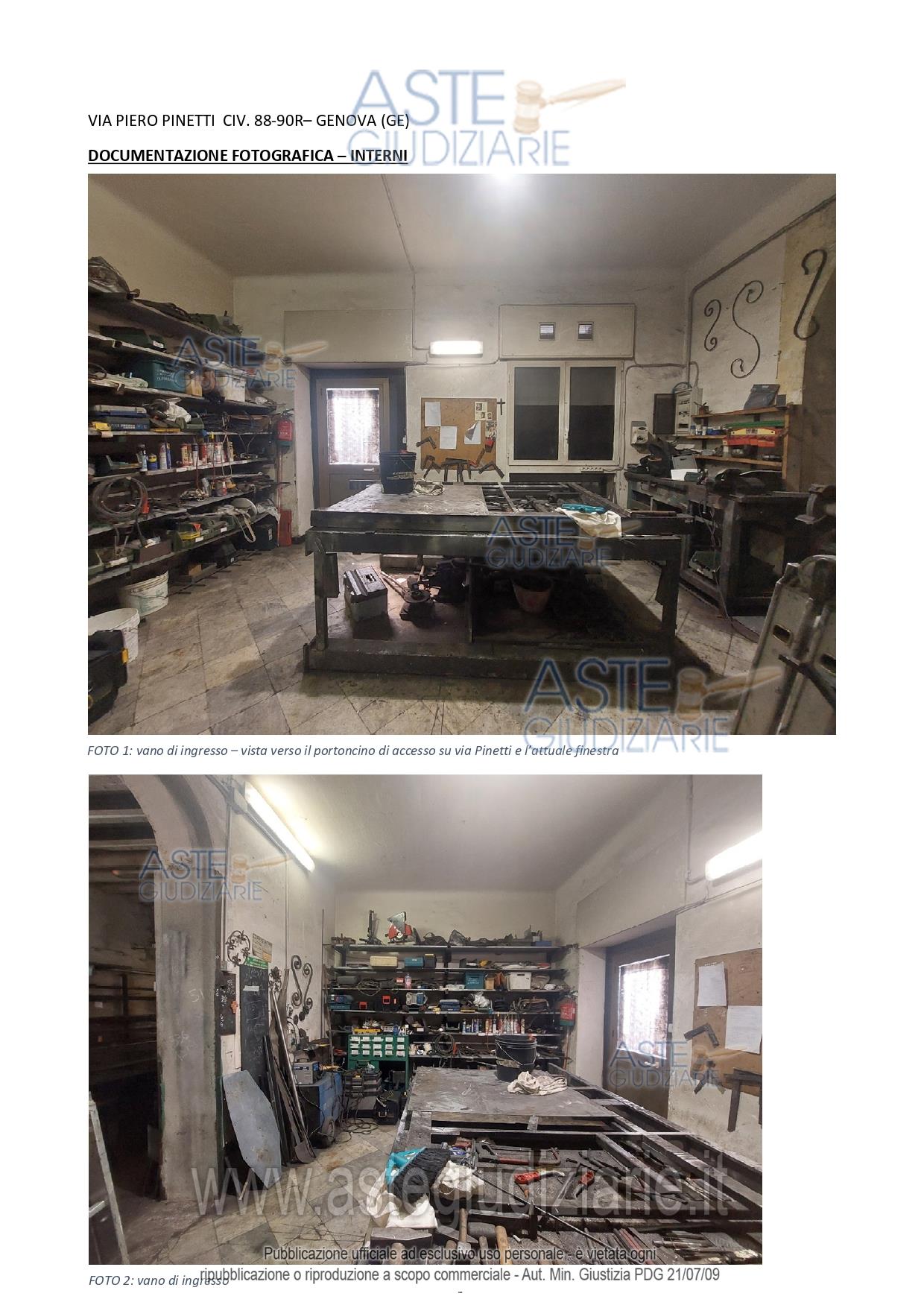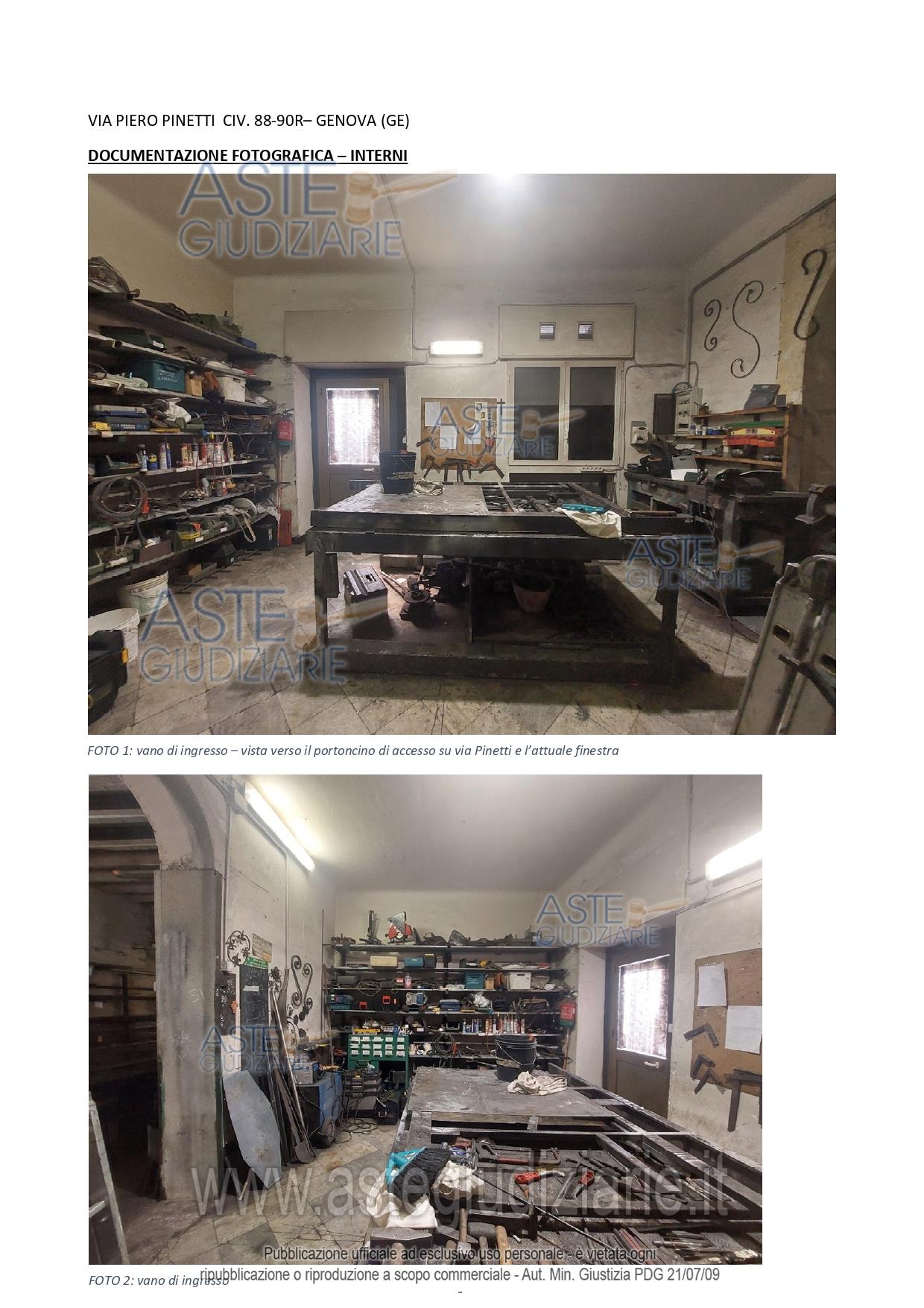 Vendita all'asta Senza incanto, con gara telematica sincrona mista - LOTTO UNICO: Locale commerciale ubicato a Genova Via Piero Pinetti civ. 88-90r composto da due ambienti passanti con accesso diretto dalla strada. Prezzo base € 14.000,00 (offerta minima € 10.500,00). Data vendita 30/04/2026 ore 12:00. Professionista delegato alla vendita Dott. Angela Alessio - Email "angelaalessio.ge@gmail.com"; Cell. 3488087521. Custode Giudiziario Dott. Sovemo Srl - Email "immobiliare@sovemo.com"; Tel. 0105299253. Rif. Tribunale di Genova - Espropriazione immobiliare (cartabia) n. 30/2024