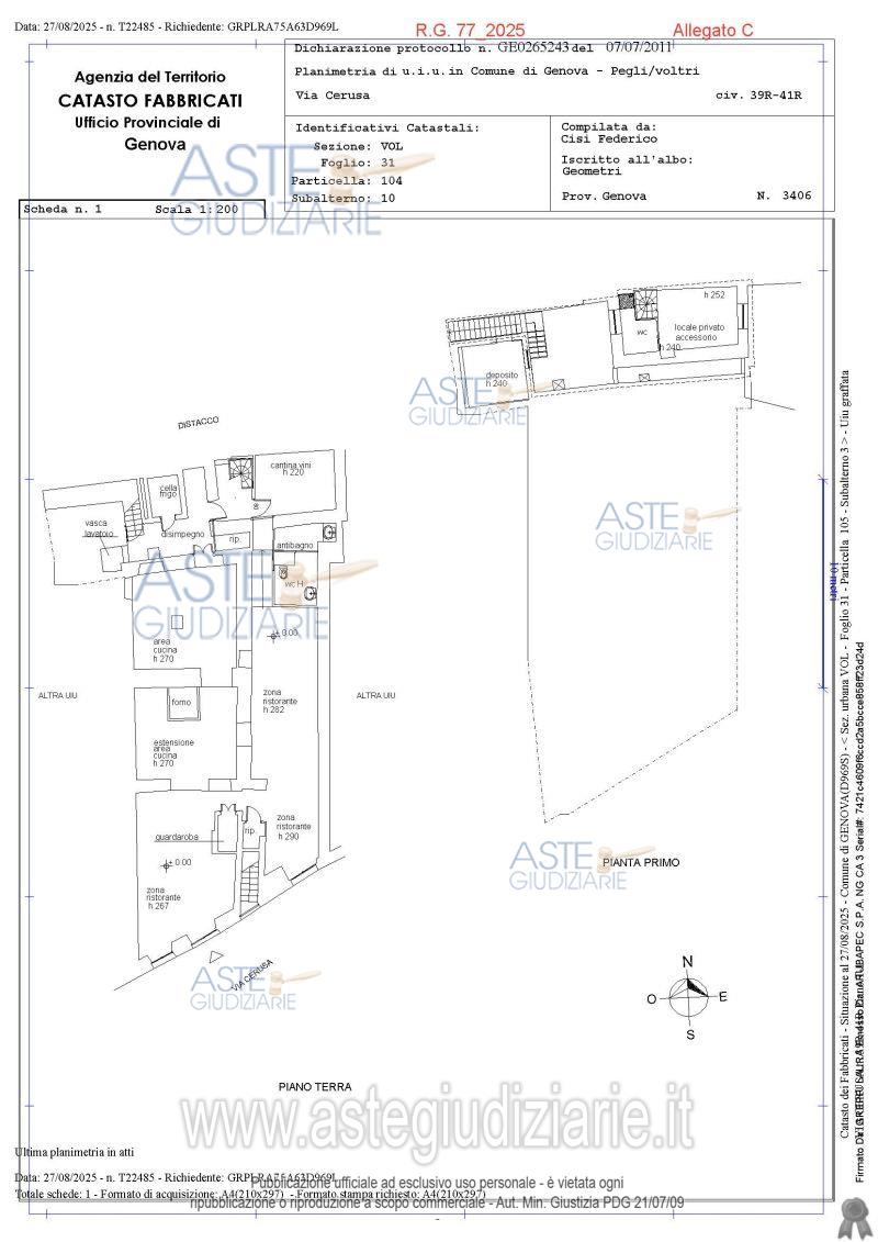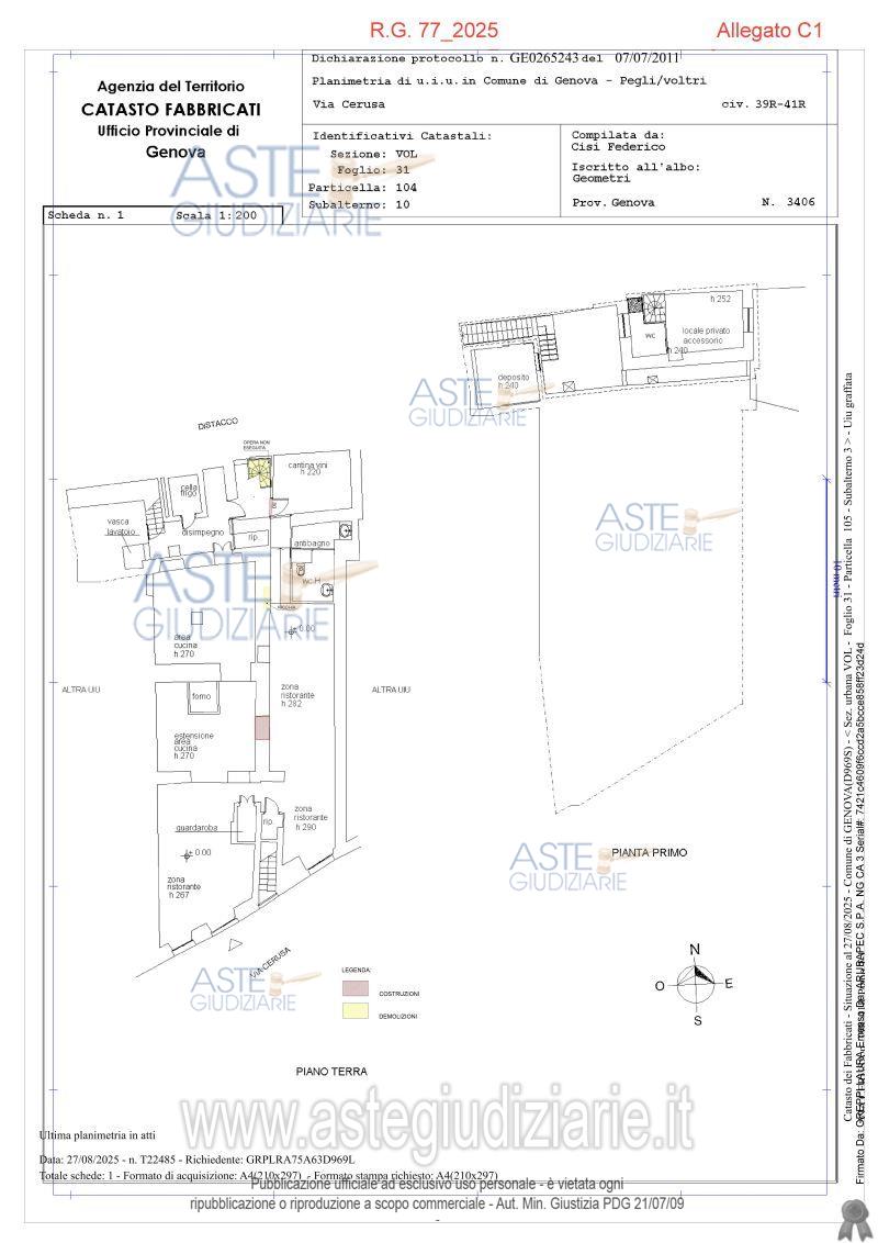 Vendita all'asta Senza incanto, con gara telematica sincrona mista - LOTTO UNICO: Intera piena proprietà dell’immobile adibito a ristorante ubicato a Genova (GE) – Via Cerusa, edificio 39-41R, piano T-1. L'immobile risulta occupato da terzi con contratto di locazione ad uso commerciale (allegato alla relazione del CTU Arch. Greppi Laura) ed è opponibile alla Procedura. Registrazione contratto: 01/07/2020Scadenza contratto: 30/06/2032. Prezzo base € 147.217,50 (offerta minima € 110.413,13). Data vendita 26/03/2026 ore 14:30. Professionista delegato alla vendita Dott. Olga Russo - Email "2segreteria@studiobenzi.com"; Tel. 010562281. Custode Giudiziario Sovemo Srl - Email "visitegenova@sovemo.com"; Tel. 0105299253. Rif. Tribunale di Genova - Espropriazione immobiliare (cartabia) n. 77/2025