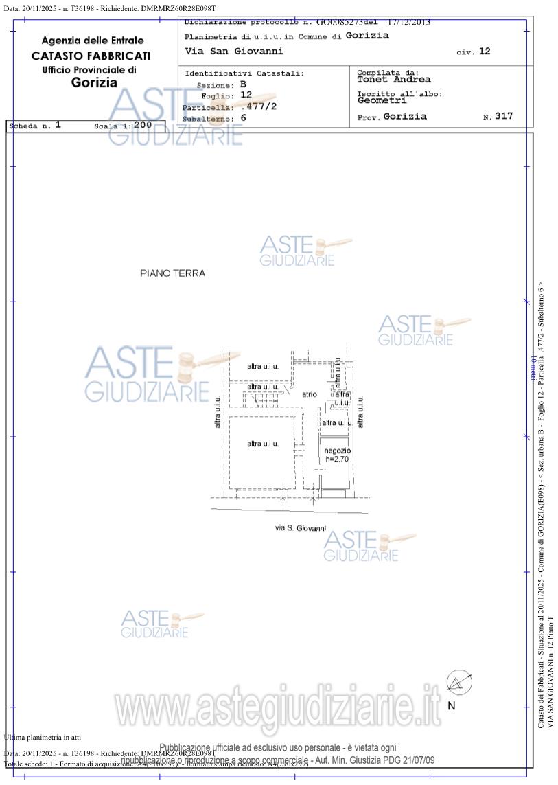 Vendita all'asta Senza incanto, con gara telematica sincrona mista - LOTTO UNICO: negozio a GORIZIA via San Giovanni 12, della superficie commerciale di 8,00 mq per la quota di 1/1 di piena proprietà. Prezzo base € 3.744,00 (offerta minima € 2.808,00). Data vendita 14/04/2026 ore 10:00. Giudice Dott. Martina Ponzin. Professionista delegato alla vendita Dott. Cristina Rizzoli - Email "studio@nead.pro"; Tel. 0481538020. Custode Giudiziario Dott. Cristina Rizzoli - Email "studio@nead.pro"; Tel. 0481538020. Rif. Tribunale di Gorizia - Espropriazione immobiliare (cartabia) n. 36/2025