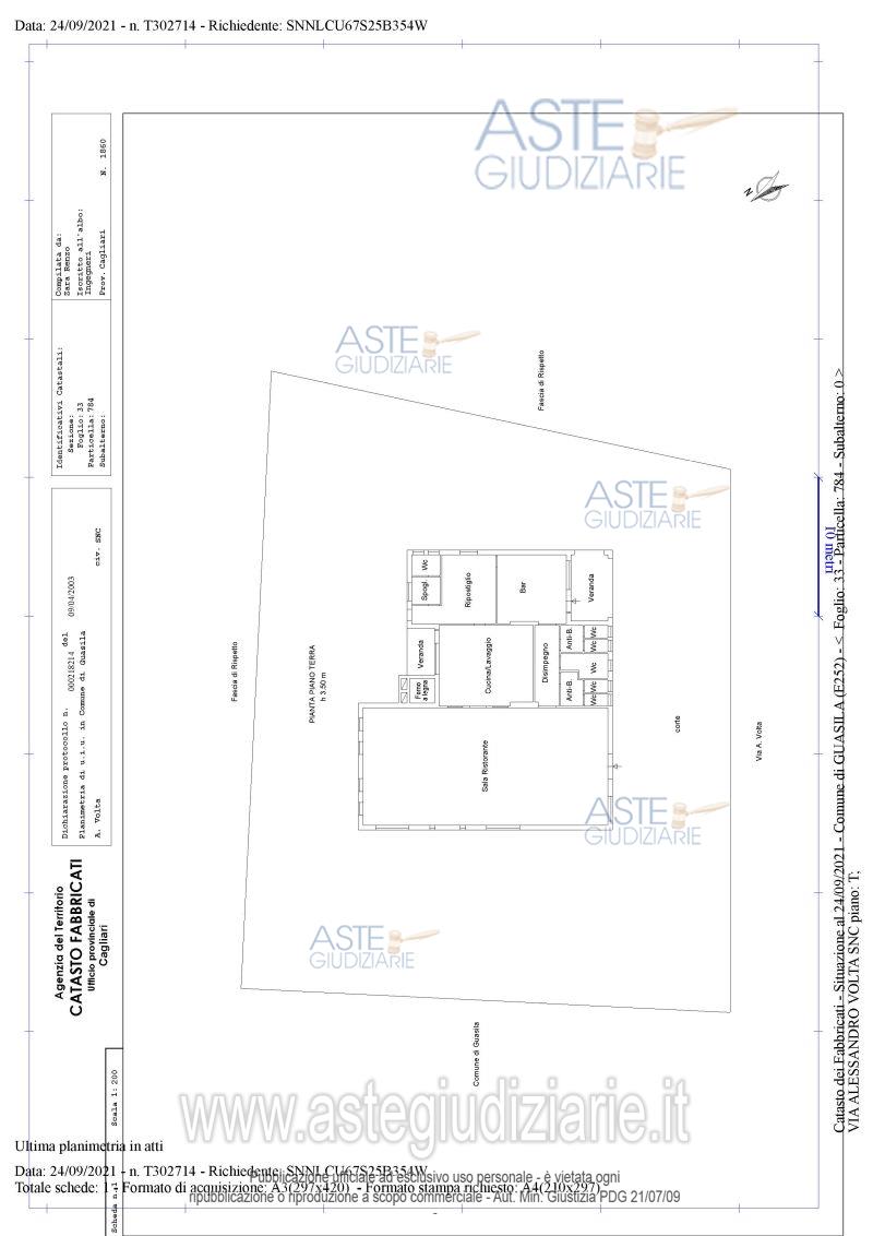 Vendita all'asta Senza incanto, con gara telematica asincrona - LOTTO UNICO: quota pari all’intero del diritto di proprietà sull’unità immobiliare destinato a ristorante e bar su un solo piano fuori terra con accesso dalla Via Alessandro Volta, nella zona artigianale/industriale di Guasila, composta da: sala ristorante, cucina, magazzino, servizi igienici per il personale, servizi igienici per la clientela, bar.oltre area esterna. Prezzo base € 68.000,00 (offerta minima € 51.000,00). Data inizio operazioni di vendita: 14/10/2025 ore 09:00. Giudice Dott. Silvia Cocco. Professionista delegato alla vendita Not. Massimiliano Vadilonga - Email "mvadilonga@notariato.it;segreteria@ufficiouniconotai.it"; Tel. 070 8899038. Custode Giudiziario Ivg Cagliari - Email "ivg.visiteimmobili@tiscali.it"; Tel. 0702299036. Rif. Tribunale di Cagliari - Esecuzione immobiliare post legge 80 n. 162/2021