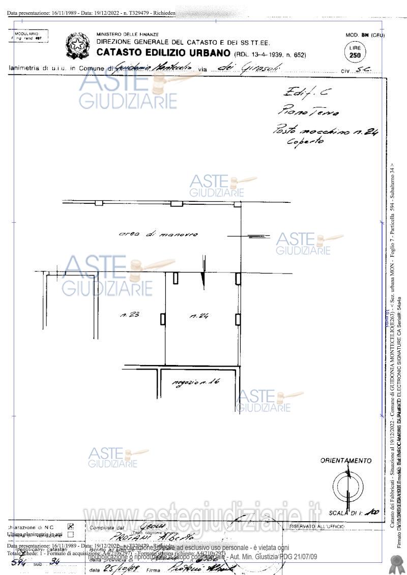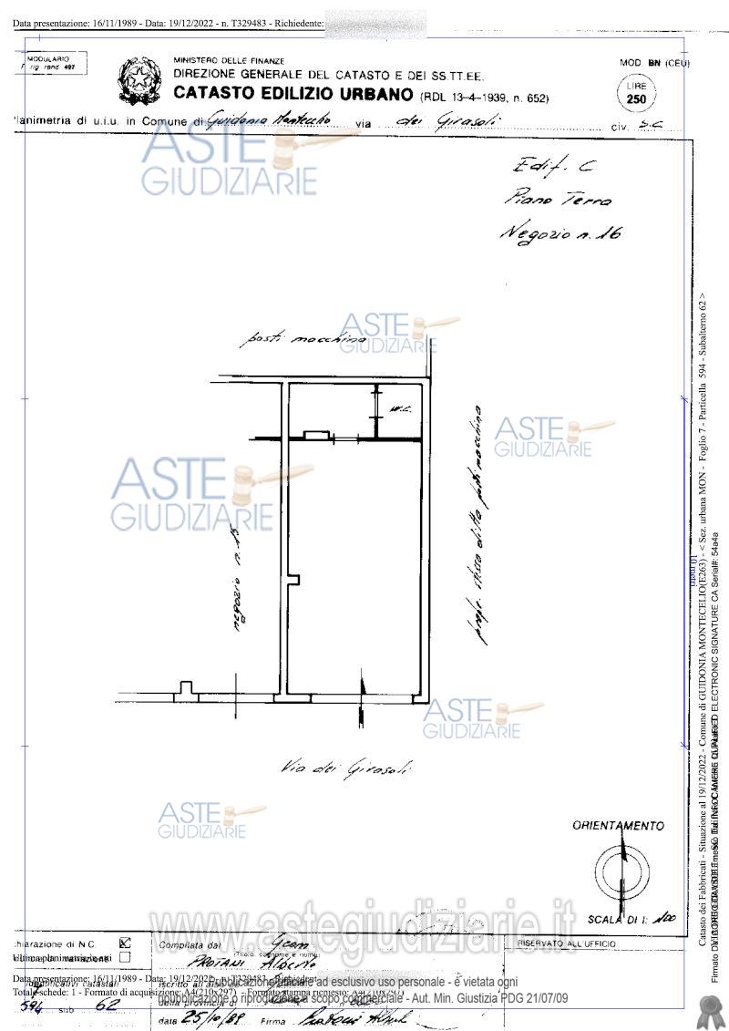 Vendita all'asta Senza incanto, con gara telematica asincrona - LOTTO UNICO: Quota pari a 1/1 del diritto di proprietà superficiaria per 99 anni a decorre dal 22 gennaio 1987su LOCALE COMMERCIALE, POSTO AUTO COPERTO E CANTINA siti in Guidonia Montecelio (Rm), Via dei Girasoli n. 36 (in catasto snc), Edificio C, Loc. Colle Fiorito. Prezzo base € 29.250,00 (offerta minima € 21.937,50). Data inizio operazioni di vendita: 16/12/2025 ore 16:00. Giudice Francesco Lupia. Professionista delegato alla vendita Avv. Federica Croce. Custode Giudiziario Ivg Di Roma Srl - Email "pvp@visiteivgroma.it". Rif. Tribunale di Tivoli - Esecuzione immobiliare post legge 80 n. 50/2022