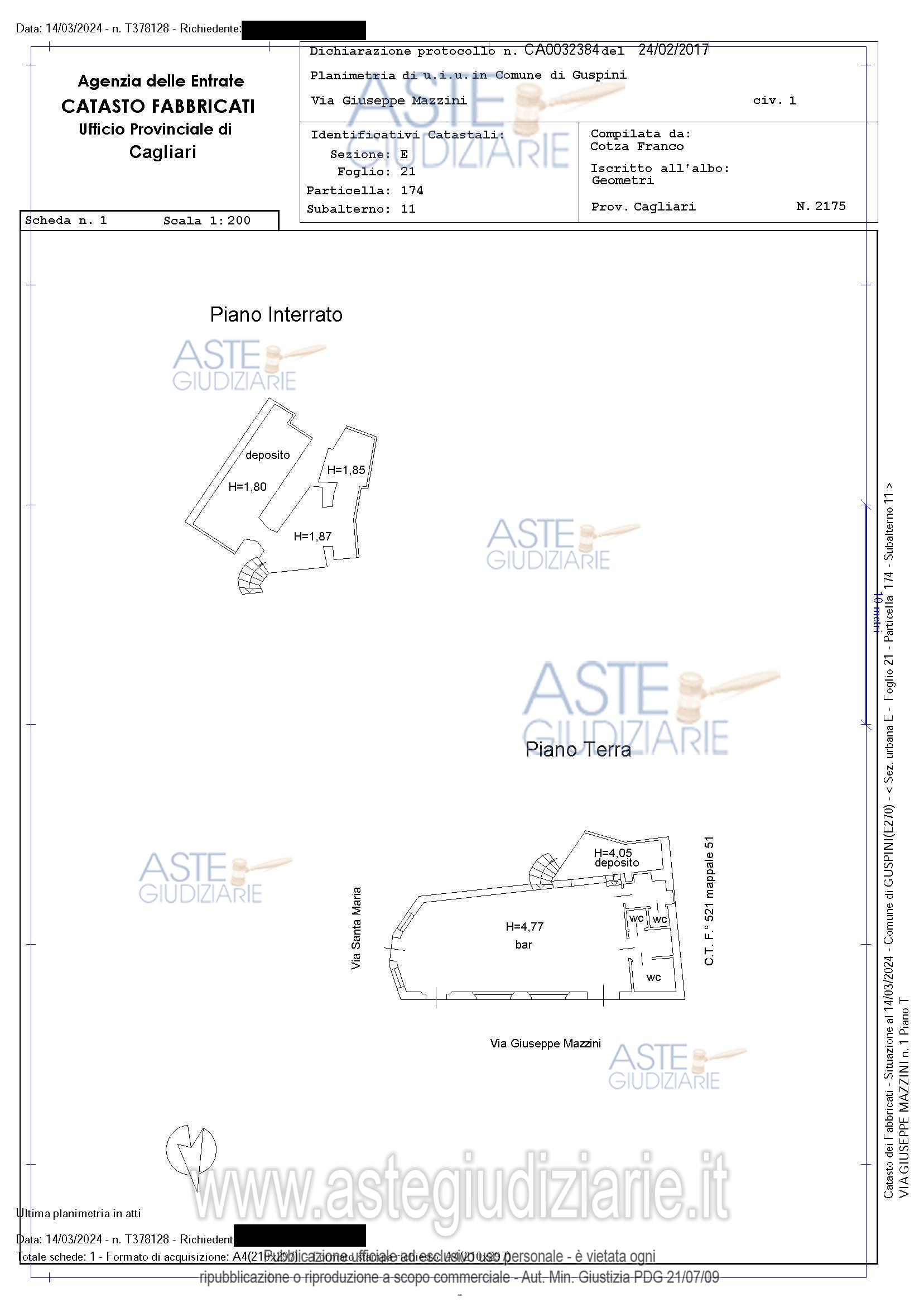 Vendita in attesa dell'emissione del nuovo bando d'asta. LOTTO 1: Quota pari a 1/1 del diritto di proprietà sull'immobile locale commerciale censito al N.C.E.U. del Comune di Guspini alla sezione E, al foglio 21, particella 174 (ex. 1057), subalterno 11 (ex 1), via Giuseppe Mazzini n. 1, piano T, categoria C/1, classe 5, consistenza 78 mq, superficie catastale totale 83 mq, rendita catastale euro 1.454,24. Ultimo prezzo base € 63.000,00 (offerta minima € 47.300,00). Giudice Silvia Cocco. Professionista delegato alla vendita Dott. Giuseppe Marongiu - Email "studio@studiomarongiu.it"; Tel. 0704560865. Custode Giudiziario Fresi Lino Icilio Felice Istituto Vendite Giudiziarie - Email "ivg.visiteimmobili@tiscali.it". Rif. Tribunale di Cagliari - Esecuzione immobiliare post legge 80 n. 76/2007