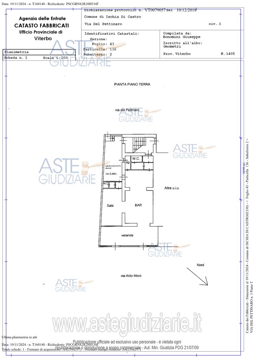 Vendita all'asta Senza incanto, con gara telematica asincrona - LOTTO UNICO: Immobile commerciale, di 148,72 Mq. situato al piano terra si sviluppa su un unico livello. È dotato di due accessi. L’ingresso principale su Via Aldo Moro immette in una veranda chiusa, che conduce alla sala bar e alla sala giochi. Da quest’ultima si accede a un disimpegno, che conduce al servizio igienico per la clientela e a un ripostiglio privato. Dal retro del bancone del bar si accede a un magazzino e alla cucina. Lo stato di manutenzione é ordinario. L’immobile è urbanisticamente regolare. Prezzo base € 75.500,00 (offerta minima € 56.625,00). Data inizio operazioni di vendita: 03/06/2026 ore 10:20. Giudice Federico Bonato. Professionista delegato alla vendita Dott. Lucia Facciolini - Email "lucia.facciolini@gmail.com"; Cell. 3209326803; Tel. 0763732144. Custode Giudiziario Dott. Lucia Facciolini - Email "lucia.facciolini@gmail.com"; Cell. 3209326803; Tel. 0763732144. Rif. Tribunale di Viterbo - Espropriazione immobiliare (cartabia) n. 137/2024