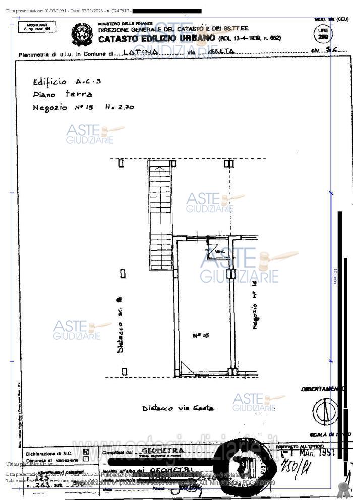 Vendita all'asta Senza incanto, con gara telematica asincrona - LOTTO 4: Diritto di piena proprietà di negozio ubicato al piano terra di un edificio nel centro urbano di Latina della superficie catastale di circa mq 32, costituito da un unico locale e nr.1 servizio igienico. Prezzo base € 22.950,00 (offerta minima € 17.212,50). Data inizio operazioni di vendita: 03/02/2026 ore 16:00. Professionista delegato alla vendita Avv. Giovanni Meccariello - Email "giovannimeccariello@gmail.com"; Cell. 3394540550. Custode Giudiziario Avv. Giovanni Meccariello - Email "giovannimeccariello@gmail.com"; Cell. 3394540550. Rif. Tribunale di Latina - Esecuzione immobiliare post legge 80 n. 268/2022