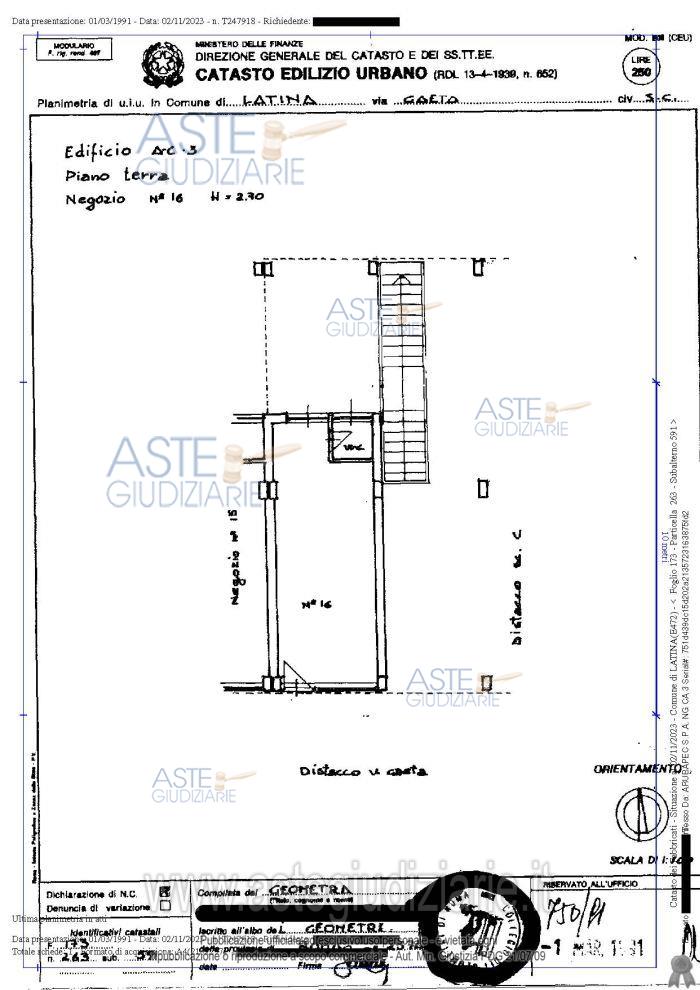 Vendita in attesa dell'emissione del nuovo bando d'asta. LOTTO 5: Diritto di piena proprietà di negozio ubicato al piano terra di un edificio nel centro urbano di Latina della superficie catastale di circa mq 30, costituito da un unico locale e nr.1 servizio igienico. Ultimo prezzo base € 28.687,50 (offerta minima € 21.515,63). Professionista delegato alla vendita Avv. Giovanni Meccariello - Email "giovannimeccariello@gmail.com"; Cell. 3394540550. Custode Giudiziario Avv. Giovanni Meccariello - Email "giovannimeccariello@gmail.com"; Cell. 3394540550. Rif. Tribunale di Latina - Esecuzione immobiliare post legge 80 n. 268/2022