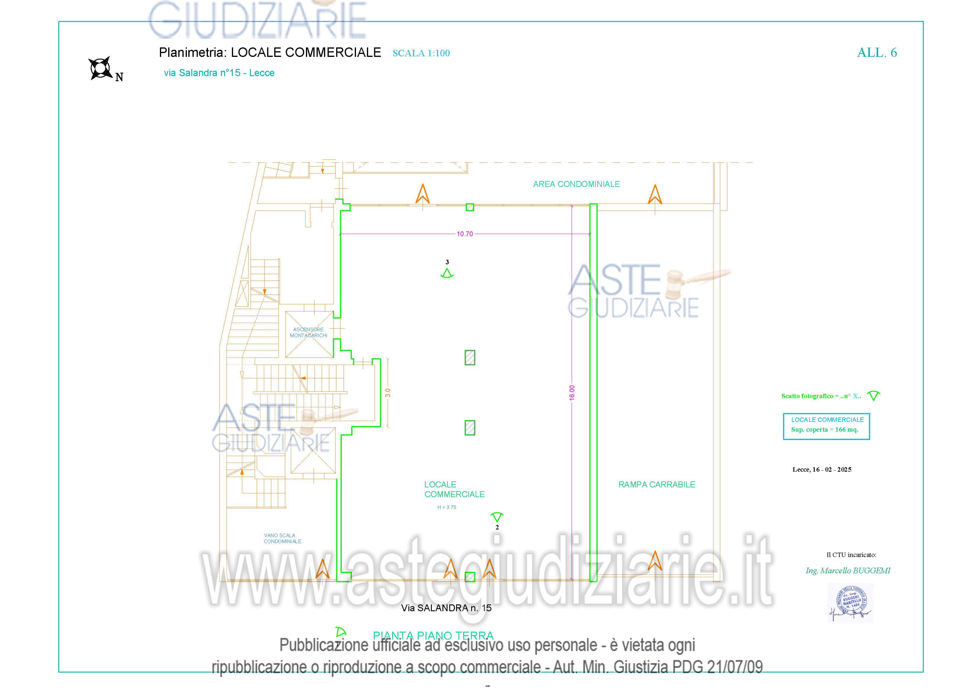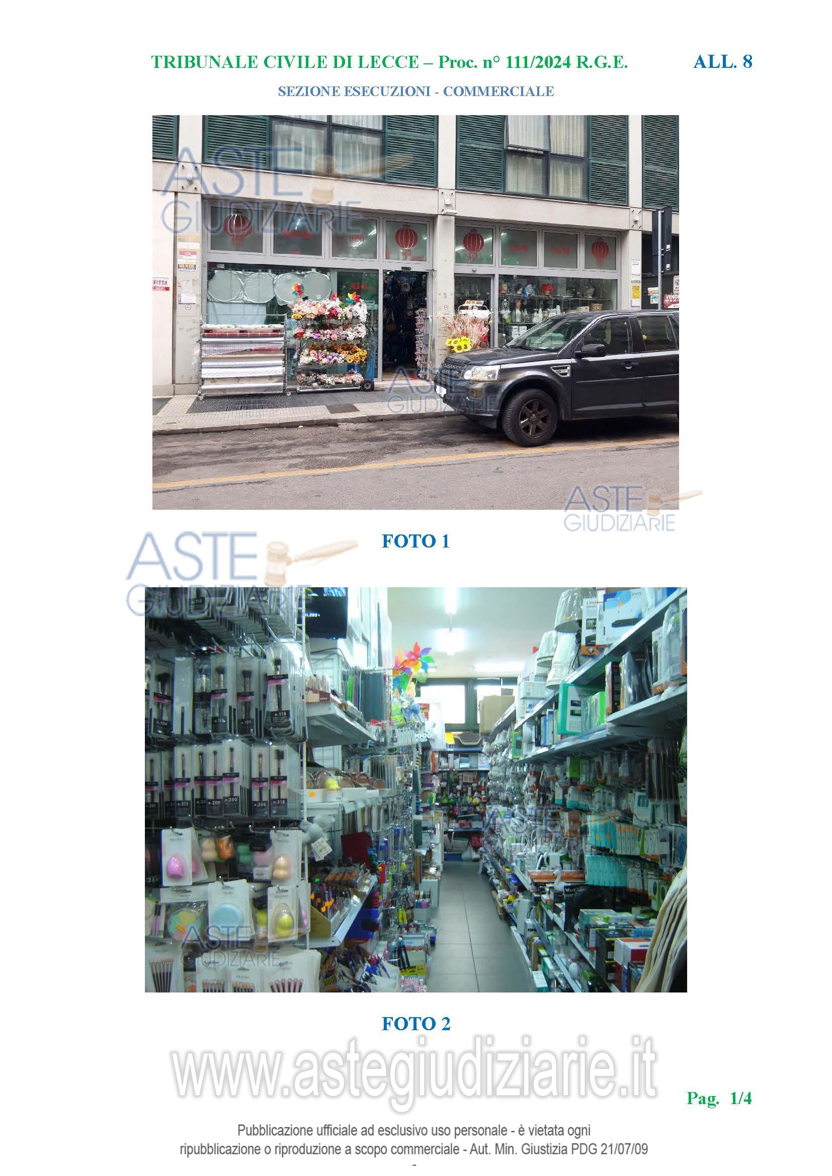 Vendita all'asta Senza incanto, con gara telematica asincrona - LOTTO UNICO: LOCALE COMMERCIALE CON DEPOSITO sito in Lecce alla Via Salandra n. 15 - piena proprietà per la quota di 1000/1000 relativamente a unità immobiliare destinata a locale commerciale posto al piano terra e composto da un unico ampio vano e da locale deposito posto al piano interrato, con ampio accesso da rampa carrabile. Prezzo base € 372.540,00 (offerta minima € 279.405,00). Data inizio operazioni di vendita: 15/01/2026 ore 10:00. Professionista delegato alla vendita Rag. Alessandra Fragola - Email "alessandrafragola@libero.it"; Cell. 3392956325. Custode Giudiziario Rag. Alessandra Fragola - Email "alessandrafragola@libero.it"; Cell. 3392956325. Rif. Tribunale di Lecce - Espropriazione immobiliare (cartabia) n. 111/2024