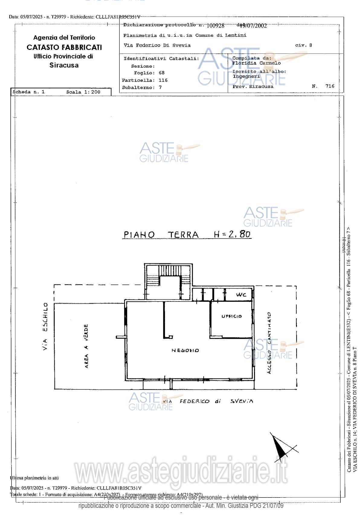 Vendita all'asta Senza incanto, con gara telematica sincrona mista - LOTTO 2: negozi e botteghe, sito in Lentini (SR) in Via Federico di Svevia n.17, consistenza mq 148, censito al N.C.E.U. del Comune di Lentini, al foglio 68, particella 116, sub.7, cat. C/1, classe 4. Prezzo base € 140.000,00 (offerta minima € 105.000,00). Data vendita 04/06/2026 ore 10:00. Giudice Maria Cristina Di Stazio. Professionista delegato alla vendita Avv. Viviana Terranova - Email "vivter@virgilio.it"; Cell. 3336571402. Custode Giudiziario Avv. Viviana Terranova - Email "vivter@virgilio.it"; Cell. 3336571402. Rif. Tribunale di Siracusa - Esecuzione immobiliare post legge 80 n. 63/2022