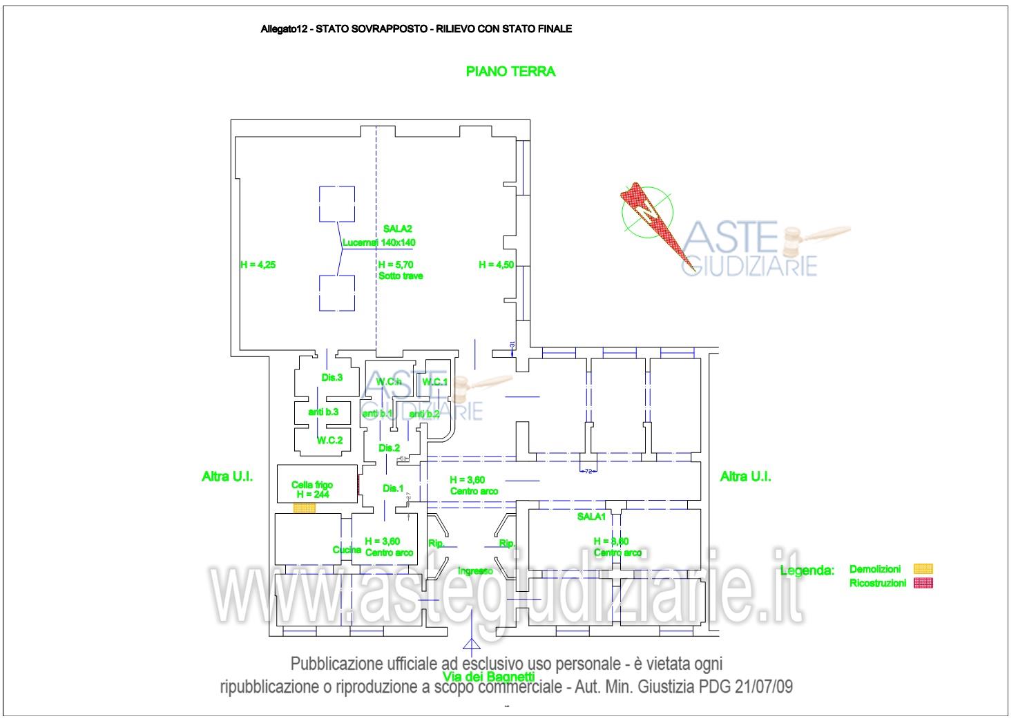 Vendita in attesa dell'emissione del nuovo bando d'asta. LOTTO 1: Unità immobiliare al piano terra composta da ampio ingresso/disimpegno con due piccoli ripostigli, due grandi sale, ed un ampio locale cucina. È presente un blocco di servizi igienici (disimpegno, due bagni, bagno e bagno per portatori di handicap) accessibile dalla zona centrale ed un altro blocco servizi costituito da disimpegno, antibagno e bagno accessibile dalla seconda delle due grandi sale posta in Livorno Via deiBagnetti n.13 esteso circa mq. 285 mq. Ultimo prezzo base € 224.000,00 (offerta minima € 168.000,00). Giudice Simona Capurso. Professionista delegato alla vendita Avv. Virginia Pucci - Email "avv.virginia.pucci@gmail.com"; Tel. 056530445. Custode Giudiziario Istituto Vendite Giudiziarie - Email "prenotazionilivorno@astagiudiziaria.com". Rif. Tribunale di Livorno - Espropriazione immobiliare (cartabia) n. 196/2024