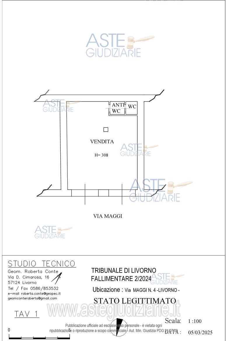Vendita in attesa dell'emissione del nuovo bando d'asta. LOTTO 7: Fondo commerciale di circa 56 mq, costituito da un ambienteunico con servizi igienici e ripostiglio, posto a pochi metridalla centrale Piazza Cavour. Sono ricompresi nel Lotto anchealcuni arredi rinvenuti all’interno del fondo. Ultimo prezzo base € 77.520,00 (offerta minima € 58.140,00). Giudice Elisa Pinna. Custode Giudiziario Dott. Michele Lorenzini - Email "michele@lorenziniboni.it"; Tel. 0586684721. Curatore Dott. Michele Lorenzini - Email "michele@lorenziniboni.it". Rif. Tribunale di Livorno - Fallimentare (nuovo rito) n. 2/2024