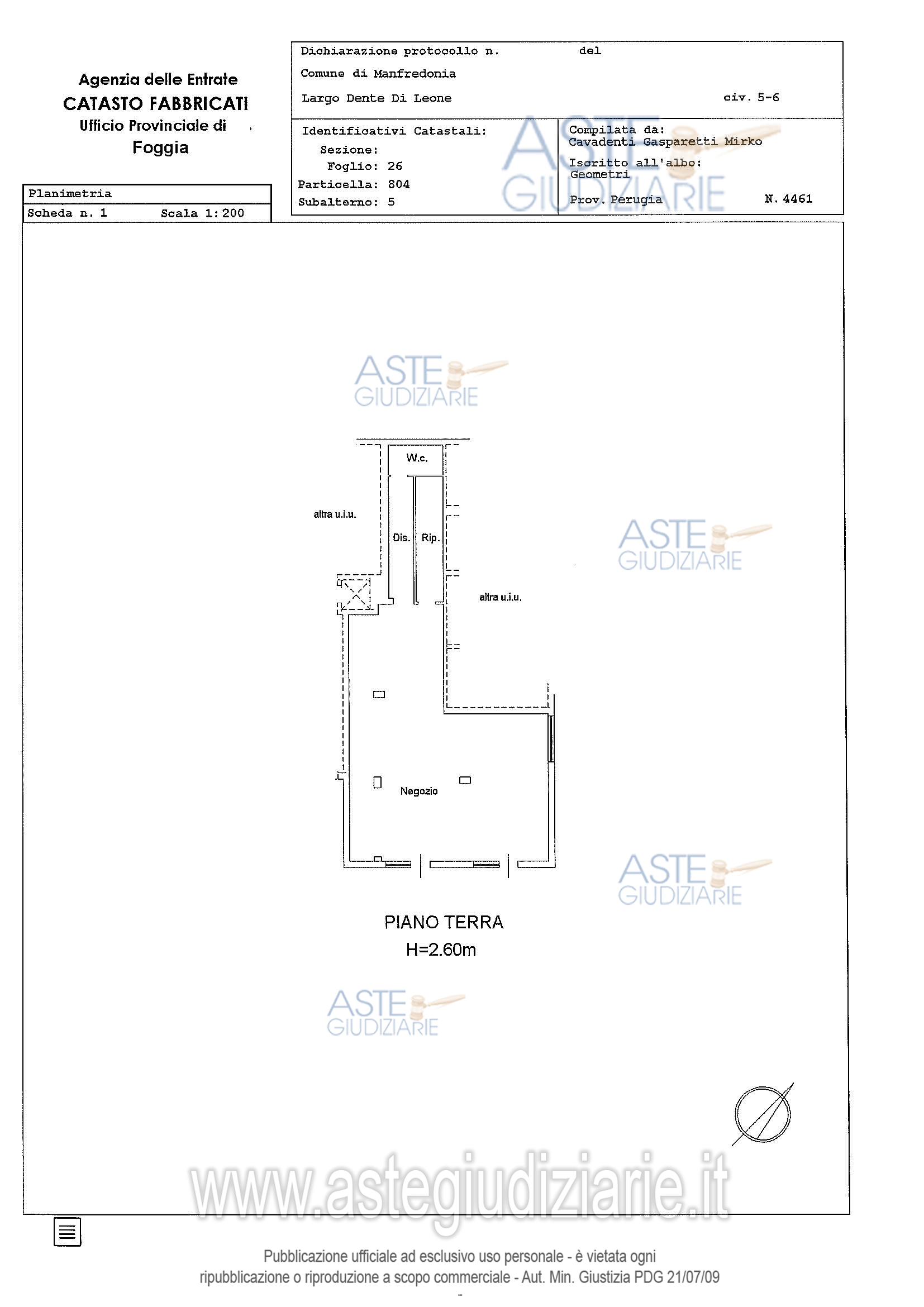 Vendita all'asta Senza incanto - LOTTO D: Locale commerciale. Prezzo base € 50.400,00. Data vendita 22/06/2026 ore 11:00. Professionista delegato alla vendita: Not. Maria Emilia Rizzo Corallo - Email "mrizzocorallo@notariato.it"; Cell. 366/2188371.
