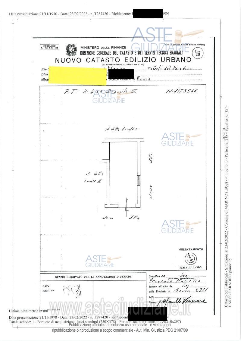 Vendita all'asta Senza incanto, con gara telematica asincrona - LOTTO 2: Diritto di piena proprietà (1/1) di: Locale commerciale sito in Marino. Prezzo base € 24.200,00 (offerta minima € 18.150,00). Data inizio operazioni di vendita: 26/03/2026 ore 14:30. Giudice Di Serafino. Professionista delegato alla vendita Avv. Valentina Carafa - Email "valentinacarafa@libero.it"; Cell. 3405298325; Tel. 0696142539. Custode Giudiziario Avv. Valentina Carafa - Email "valentinacarafa@libero.it"; Cell. 3405298325; Tel. 0696142539. Rif. Tribunale di Velletri - Contenzioso civile n. 789/2023