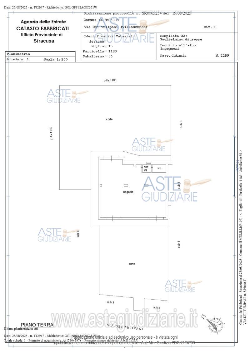 Vendita all'asta Senza incanto, con gara telematica sincrona mista - LOTTO 2: Piena proprietà di bottega sita al piano terra della palazzina P4, della superficie catastale di mq. 197, dotata di porzione di corte di pertinenza esclusiva. Il bene risulta libero. Prezzo base € 57.000,00 (offerta minima € 42.750,00). Data vendita 25/06/2026 ore 11:00. Giudice Dott. Fabio Letterio Ciraolo. Custode Giudiziario Avv. Maria Cristina Grassi - Email "avv.mariacristinagrassi@gmail.com". Curatore Avv. Maria Cristina Grassi - Email "avv.mariacristinagrassi@gmail.com"; Tel. 0950907731. Rif. Tribunale di Catania - Fallimentare n. 1/2007