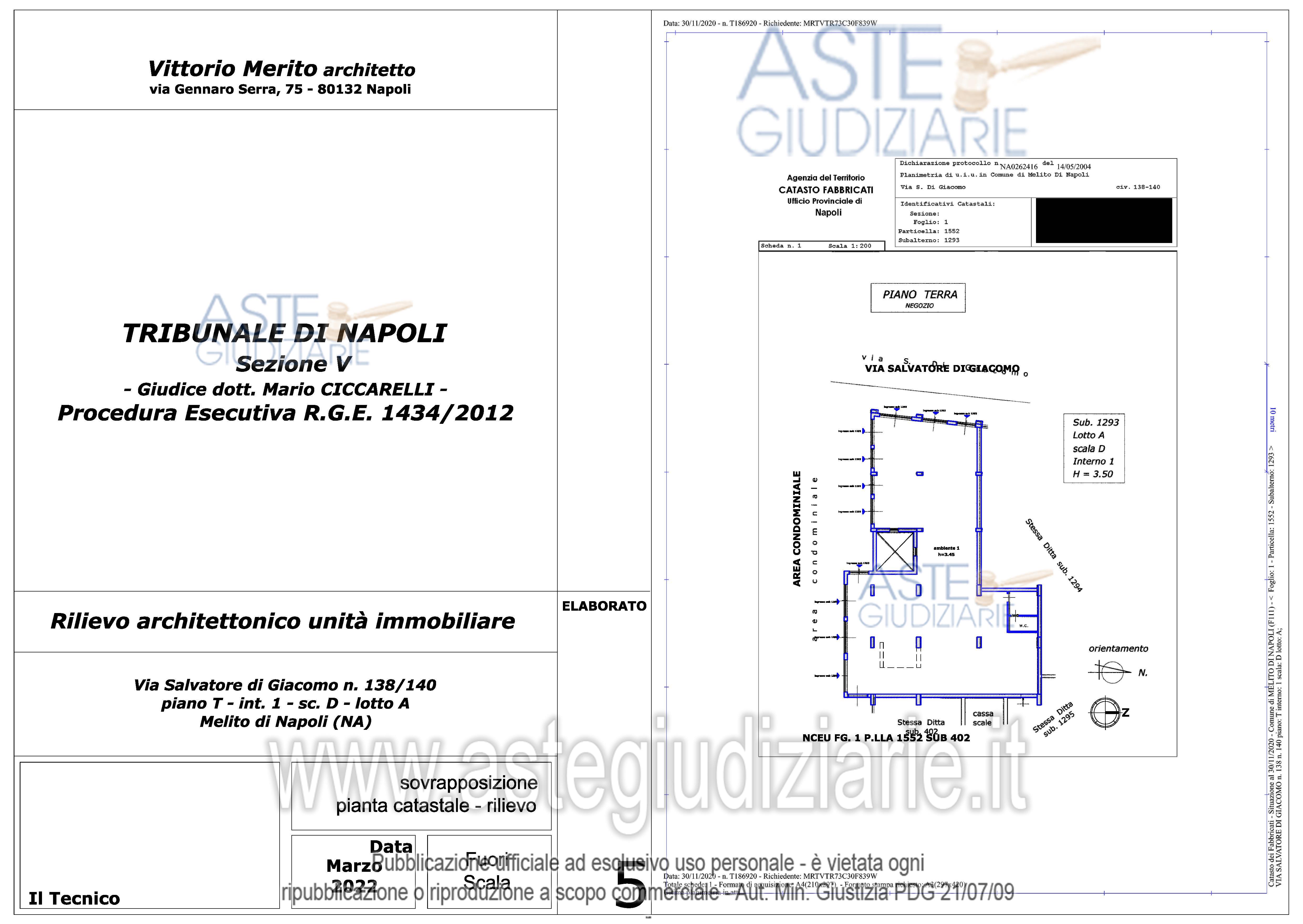 Vendita all'asta Senza incanto, con gara telematica asincrona - LOTTO 11: Piena e intera proprietà del seguente immobile sito in Melito di Napoli alla Via Salvatore di Giacomo n° 138-140: Locale commerciale al piano T - interno 1 - scala D - lotto A, sup. cat. 328 mq. Prezzo base € 46.098,00 (offerta minima € 34.574,00). Data inizio operazioni di vendita: 10/02/2026 ore 15:30. Giudice Ciccarelli. Professionista delegato alla vendita Avv. Valeria Collicelli - Email "valcollicelli@yahoo.it"; Cell. 3935402256. Custode Giudiziario Avv. Valeria Collicelli - Email "valcollicelli@yahoo.it"; Cell. 3935402256. Rif. Tribunale di Napoli - Esecuzione immobiliare post legge 80 n. 1434/2012