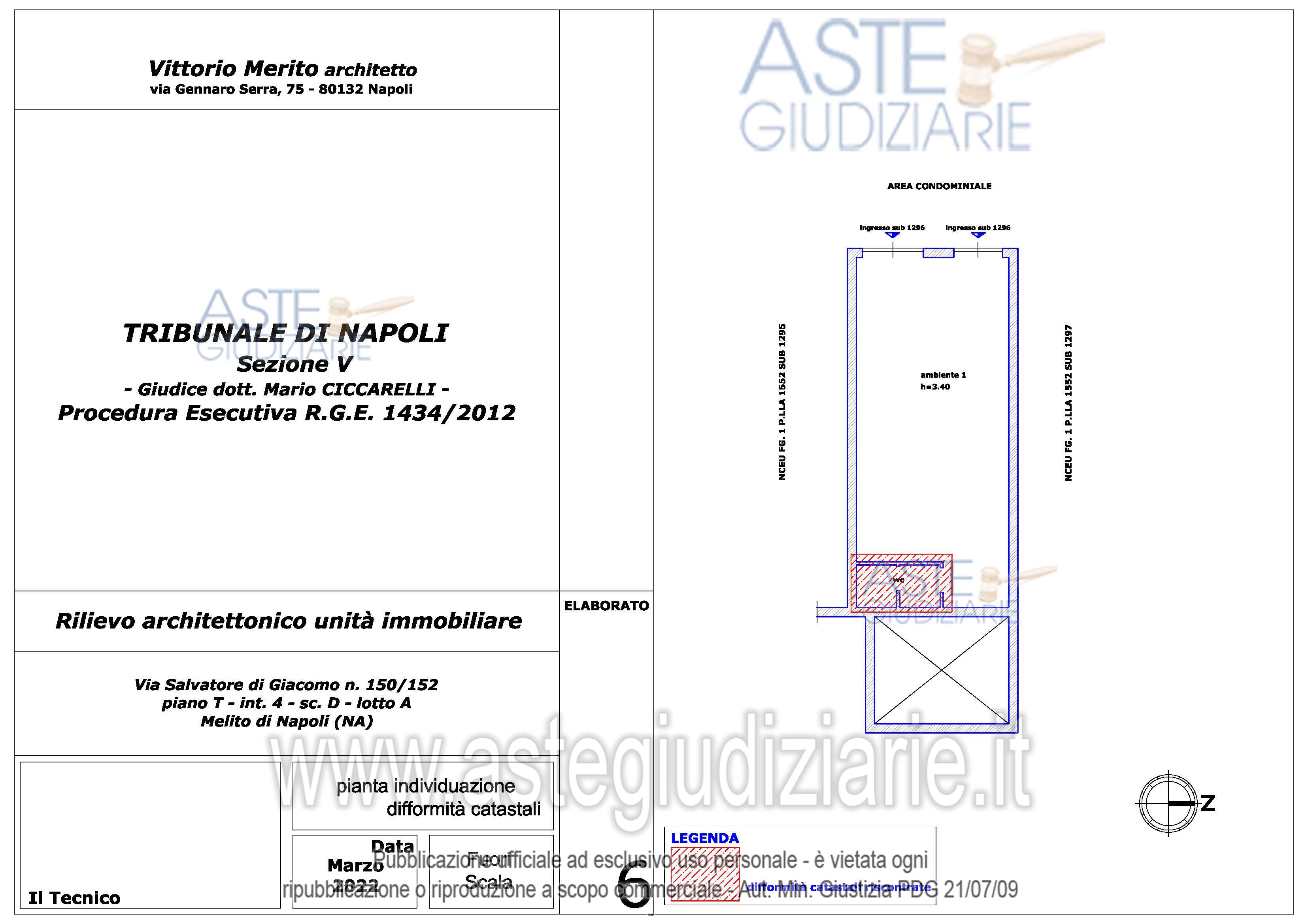 Vendita all'asta Senza incanto, con gara telematica asincrona - LOTTO 13: Piena e intera proprietà del seguente immobile sito in Melito di Napoli alla Via Salvatore di Giacomo n° 150-152: Locale commerciale al piano T, interno 4, scala D, lotto A, sup. cat. 59 mq. Prezzo base € 8.936,00 (offerta minima € 6.702,00). Data inizio operazioni di vendita: 10/02/2026 ore 15:30. Giudice Ciccarelli. Professionista delegato alla vendita Avv. Valeria Collicelli - Email "valcollicelli@yahoo.it"; Cell. 3935402256. Custode Giudiziario Avv. Valeria Collicelli - Email "valcollicelli@yahoo.it"; Cell. 3935402256. Rif. Tribunale di Napoli - Esecuzione immobiliare post legge 80 n. 1434/2012