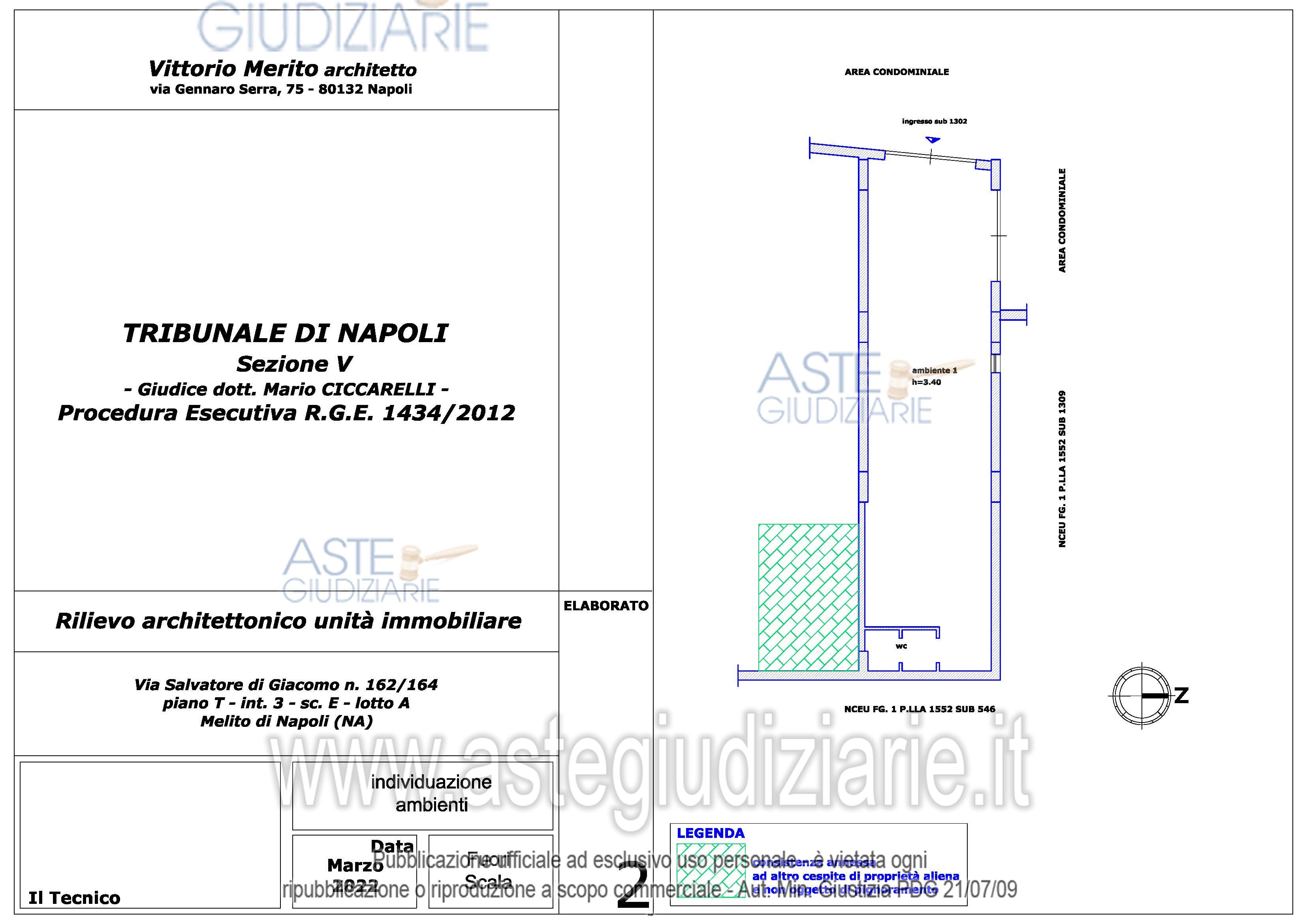 Vendita all'asta Senza incanto, con gara telematica asincrona - LOTTO 15: Piena e intera proprietà del seguente immobile sito in Melito di Napoli alla Via Salvatore di Giacomo n. 162-164: Locale commerciale al piano T, interno 3, scala E, lotto A, sup. cat. 90 mq. Prezzo base € 9.345,00 (offerta minima € 7.009,00). Data inizio operazioni di vendita: 06/05/2026 ore 09:30. Giudice Dott. Mario Ciccarelli. Professionista delegato alla vendita Avv. Valeria Collicelli - Email "valcollicelli@yahoo.it"; Cell. 3292619009. Custode Giudiziario Avv. Valeria Collicelli - Email "valcollicelli@yahoo.it"; Cell. 3292619009. Rif. Tribunale di Napoli - Esecuzione immobiliare post legge 80 n. 1434/2012