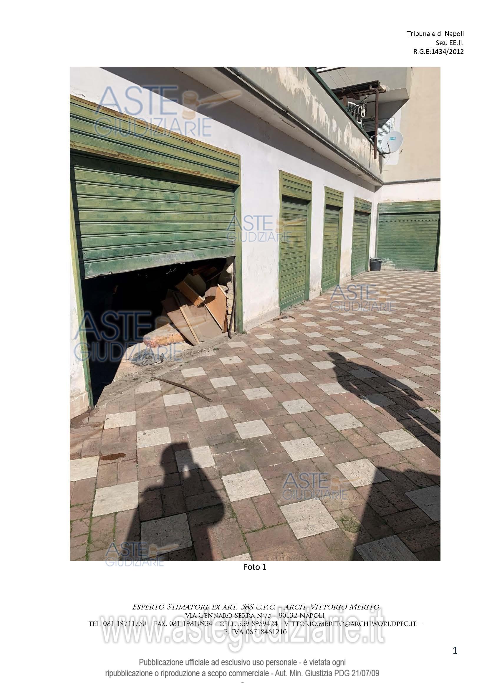 Vendita all'asta Senza incanto, con gara telematica asincrona - LOTTO 17: Piena e intera proprietà del seguente immobile sito in Melito di Napoli alla via Enrico de Nicola n. 3: Locale commerciale al piano T, interno 1, scala F, lotto A, edificio 6, sup. cat. 201 mq. Prezzo base € 31.325,00 (offerta minima € 23.494,00). Data inizio operazioni di vendita: 10/02/2026 ore 15:30. Giudice Ciccarelli. Professionista delegato alla vendita Avv. Valeria Collicelli - Email "valcollicelli@yahoo.it"; Cell. 3935402256. Custode Giudiziario Avv. Valeria Collicelli - Email "valcollicelli@yahoo.it"; Cell. 3935402256. Rif. Tribunale di Napoli - Esecuzione immobiliare post legge 80 n. 1434/2012