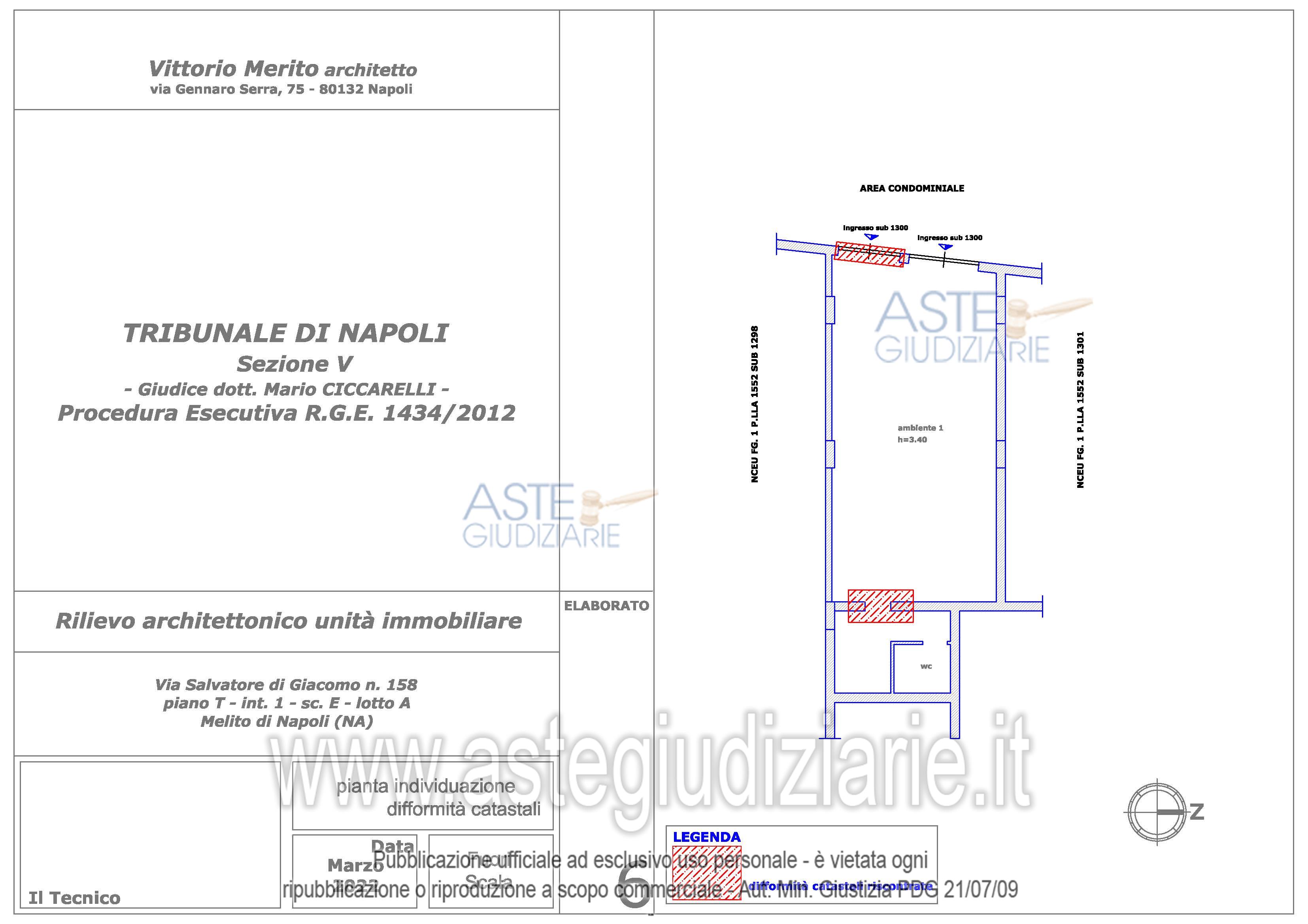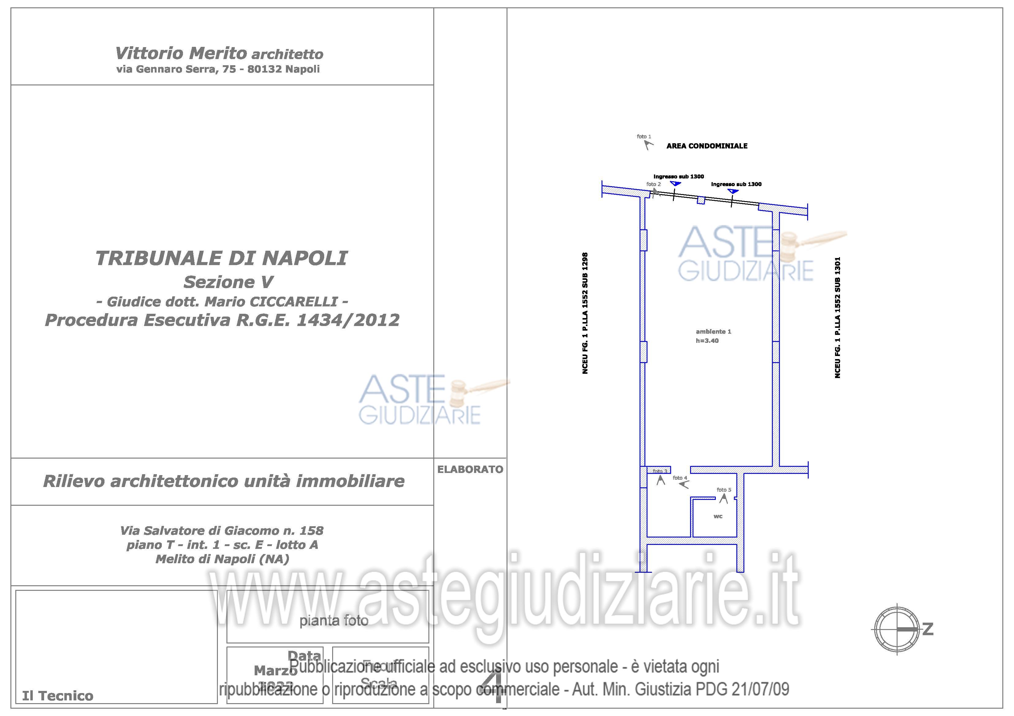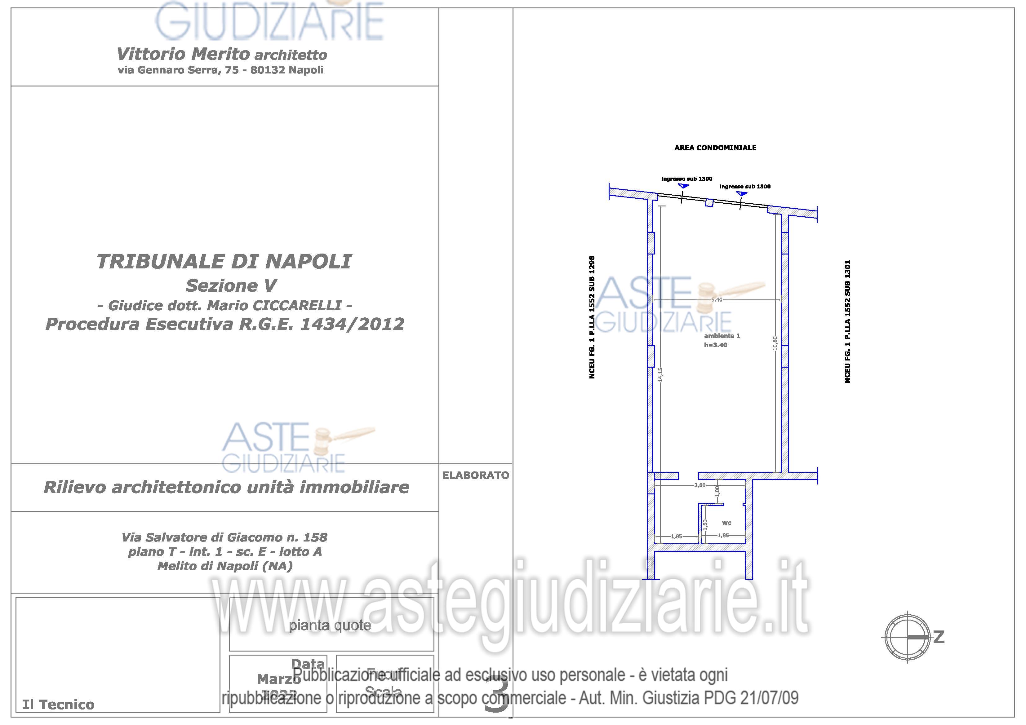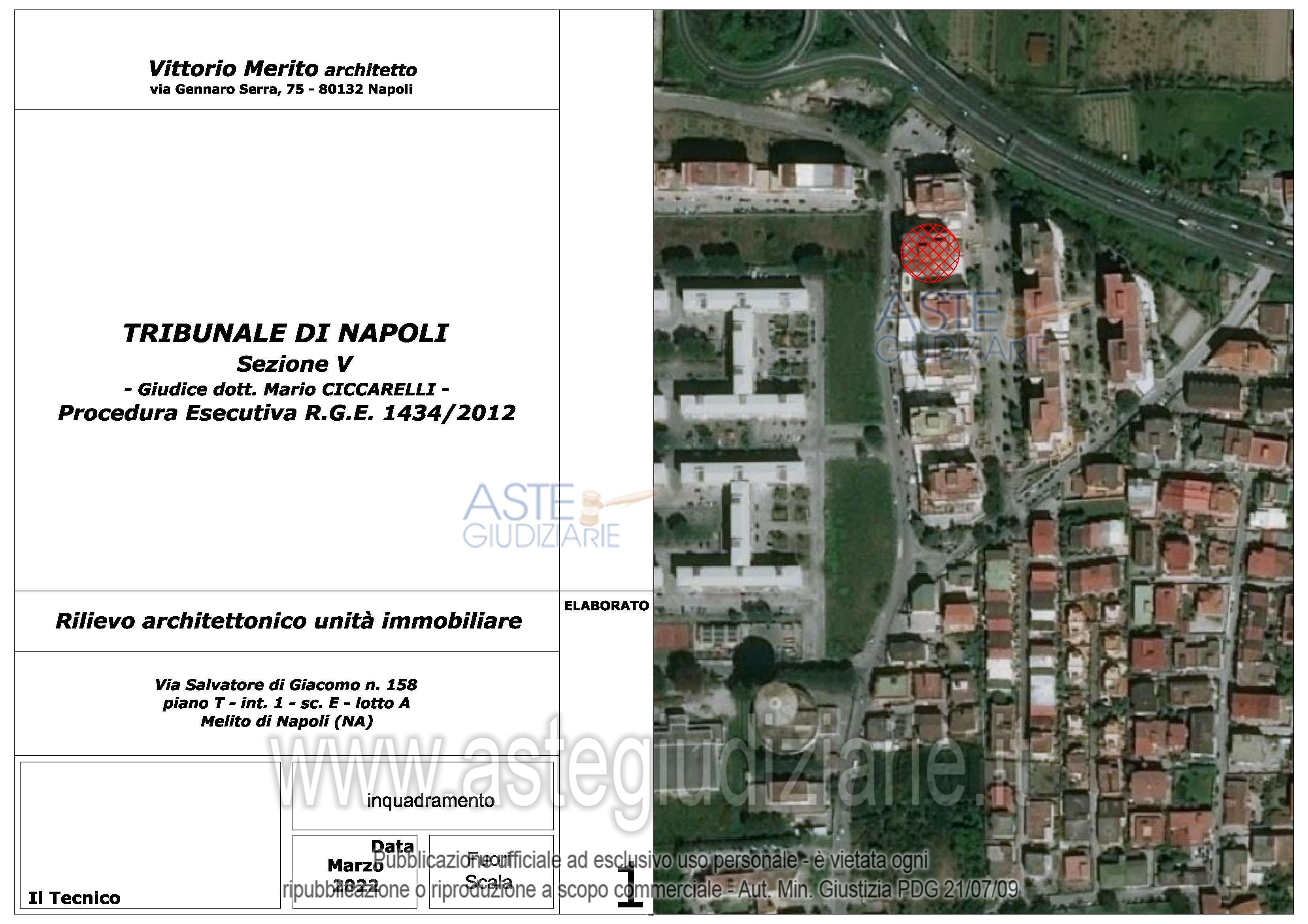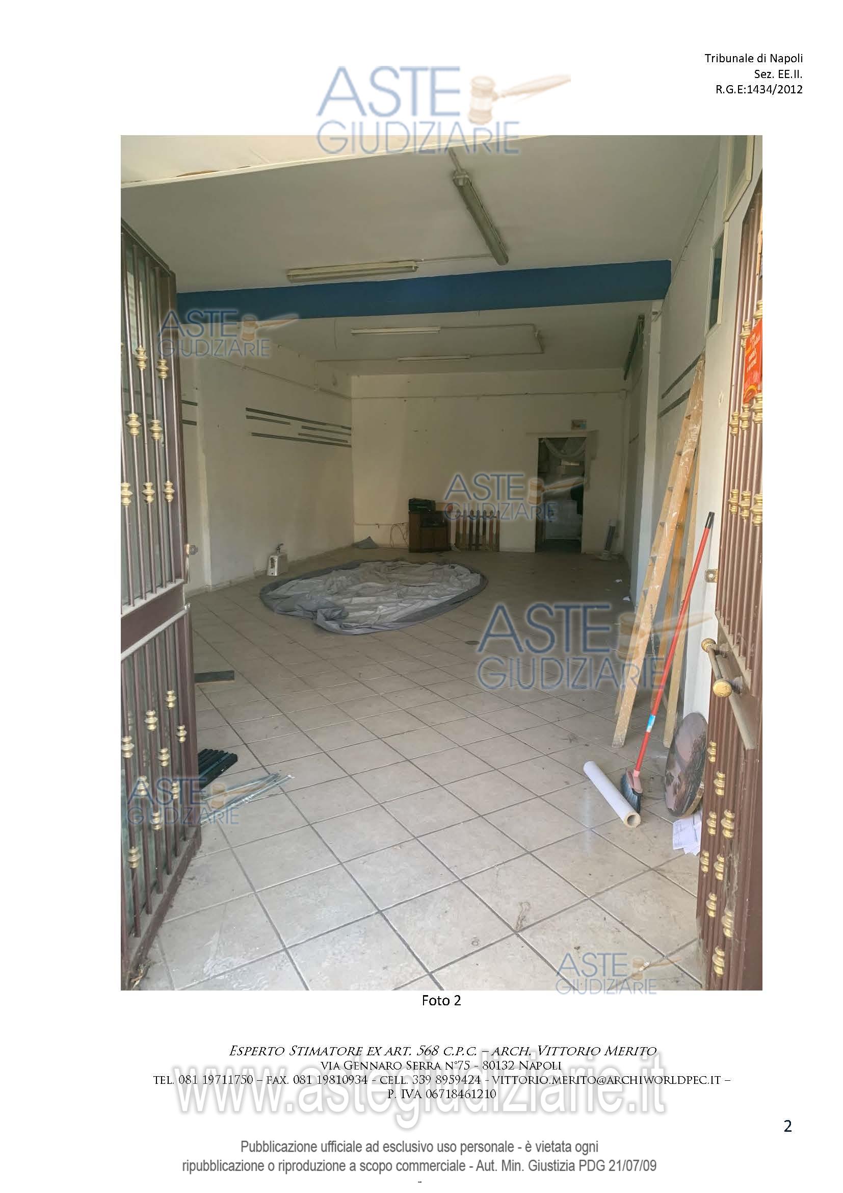 Vendita all'asta Senza incanto, con gara telematica asincrona - LOTTO 14: Piena e intera proprietà del seguente immobile sito in Melito di Napoli alla Via Salvatore di Giacomo n° 158: Locale commerciale al piano T, interno 1, scala E, lotto A, sup. cat. 80 mq. Prezzo base € 10.431,00 (offerta minima € 7.824,00). Data inizio operazioni di vendita: 10/02/2026 ore 15:30. Giudice Ciccarelli. Professionista delegato alla vendita Avv. Valeria Collicelli - Email "valcollicelli@yahoo.it"; Cell. 3935402256. Custode Giudiziario Avv. Valeria Collicelli - Email "valcollicelli@yahoo.it"; Cell. 3935402256. Rif. Tribunale di Napoli - Esecuzione immobiliare post legge 80 n. 1434/2012
