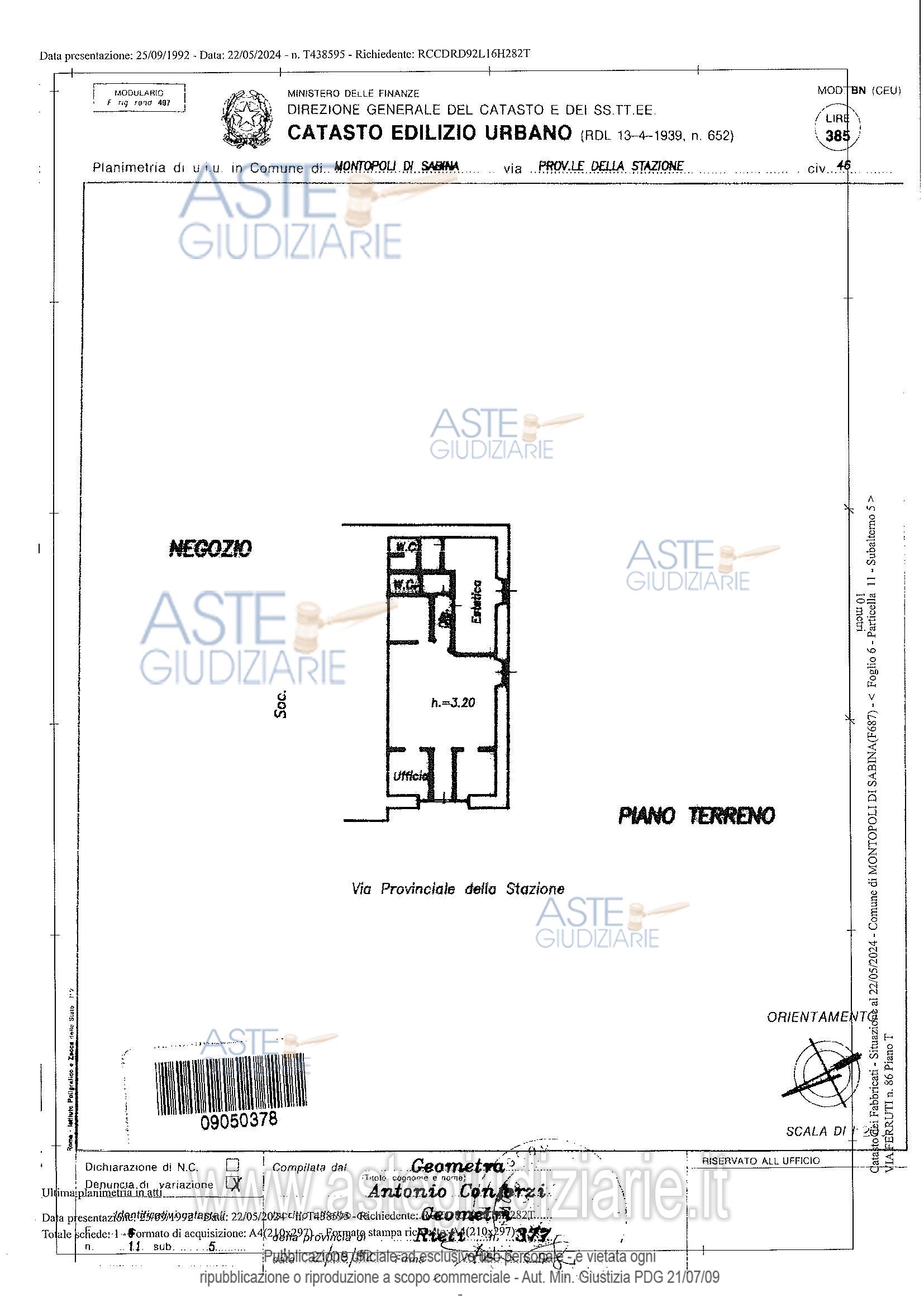 Vendita all'asta Senza incanto, con gara telematica asincrona - LOTTO UNICO: QUOTA PARI A 1/1 DELLA PIENA PROPRIETA' DI UN LOCALE AD USO MAGAZZINO (OGGI UTILIZZATO COME NEGOZIO PARRUCCHIERE) SITO IN MONTOPOLI DI SABINA ALLA VIA FERRUTI N. 80, POSTA AL PIANO TERRA, L'IMMOBILE SI TROVA IN SUFFICIENTI CONDIZIONI DI MANUTENZIONE ED E' COMPOSTO DA UN AMPIO LOCALE, TRE VANI AD USO ESTETICA, UFFICIO E SALA DI ATTESA E NUMERO DUE BAGNI. I METRI QUADRI LORDI DEL LOCALE AD USO NEGOZIO SONO CIRCA 74 I METRI QUADRI NETTI SONO CIRCA 62,5. L'IMMOBILE E' CENSITO IN CATASTO FABBRICATI DEL COMUNE DI. Prezzo base € 25.886,00 (offerta minima € 19.414,50). Data inizio operazioni di vendita: 11/05/2026 ore 10:40. Professionista delegato alla vendita Avv. Cristiana Casanica - Email "cricasanica@libero.it"; Cell. 3335287570. Custode Giudiziario Avv. Cristiana Casanica - Email "cricasanica@libero.it"; Cell. 3335287570. Rif. Tribunale di Rieti - Espropriazione immobiliare (cartabia) n. 40/2024