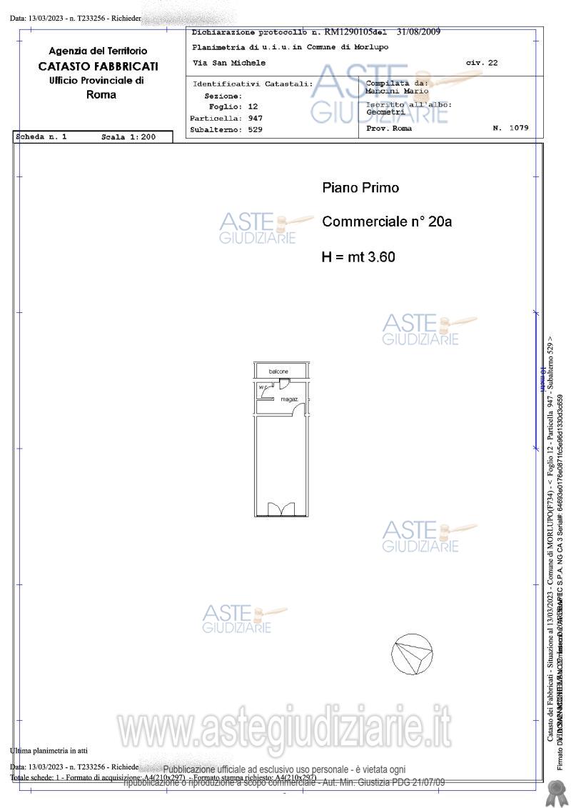 Vendita all'asta Senza incanto, con gara telematica asincrona - LOTTO 3: Quota 1/1 del diritto di proprietà su più unità immobiliari a destinazione commerciale, adiacenti tra loro e tutte all’interno di un centro commerciale sito in Comune di Morlupo (RM), Via San Michele n.22 interni nn.20/a+21 al p. 1°; l’unità è composta da un vano (n.1) avente una superficie utile di circa 66,50 mq, un magazzino (n.1) avente una superficie utile di circa 5,60 mq. un wc (n.1) avente una superficie utile di circa 1,40 mq. Prezzo base € 11.812,50 (offerta minima € 8.859,37). Data inizio operazioni di vendita: 18/12/2025 ore 15:00. Giudice Dott. Francesco Lupia. Professionista delegato alla vendita Avv. Corrado Testa. Custode Giudiziario Ivg Di Roma Srl - Email "pvp@visiteivgroma.it"; Tel. 0689569801. Rif. Tribunale di Tivoli - Esecuzione immobiliare post legge 80 n. 183/2022