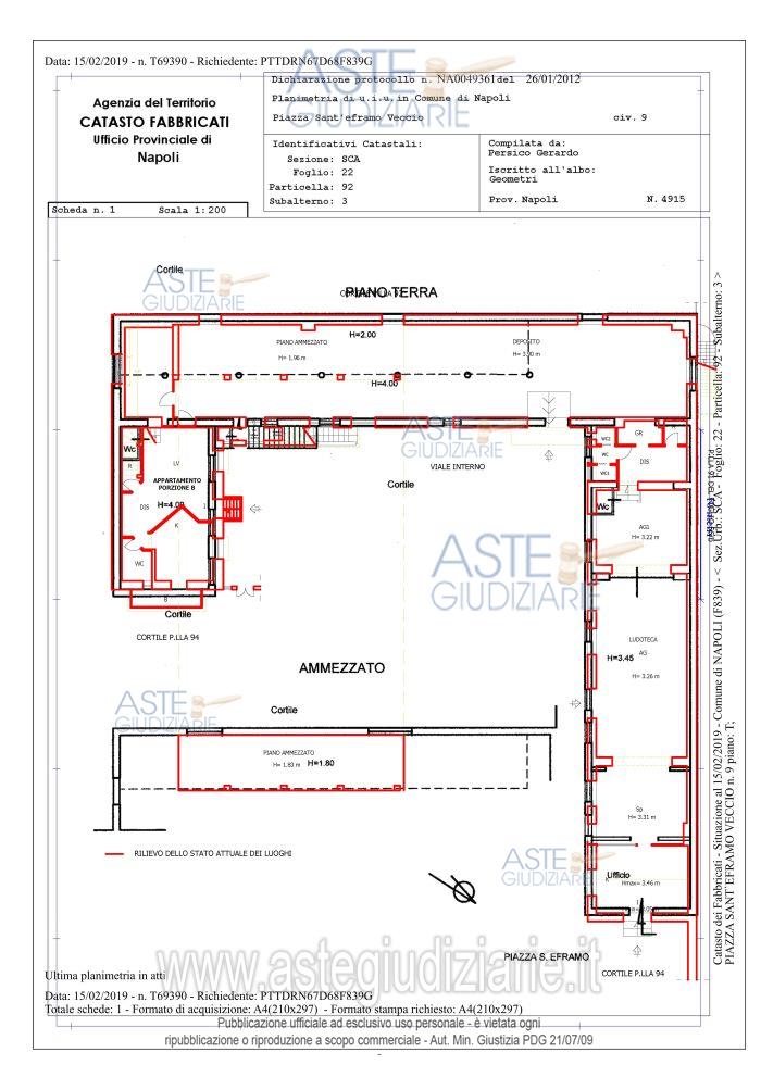 Vendita all'asta Senza incanto, con gara telematica asincrona - LOTTO UNICO: piena ed intera proprietà di locale negozio-deposito sito in Napoli alla Piazza Sant’Eframo Vecchio n. 9/13, piano terra, categoria C/1, classe 3, consistenza mq. 466, sup. catastale totale mq. 493, rendita euro 11.335,51 .Tale immobile, al piano terra, si presenta attualmente frazionato in tre unità immobiliari autonome adibite a ludoteca, deposito e porzione di appartamento. Prezzo base € 97.200,00 (offerta minima € 72.900,00). Data inizio operazioni di vendita: 15/01/2026 ore 16:45. Professionista delegato alla vendita Avv. Errico Eduardo Chiusolo - Email "ERRICO.CHIUSOLO@LIBERO.IT"; Tel. 0815623100. Custode Giudiziario Avv. Errico Eduardo Chiusolo - Email "ERRICO.CHIUSOLO@LIBERO.IT"; Tel. 0815623100. Rif. Tribunale di Napoli - Esecuzione immobiliare post legge 80 n. 1187/2014